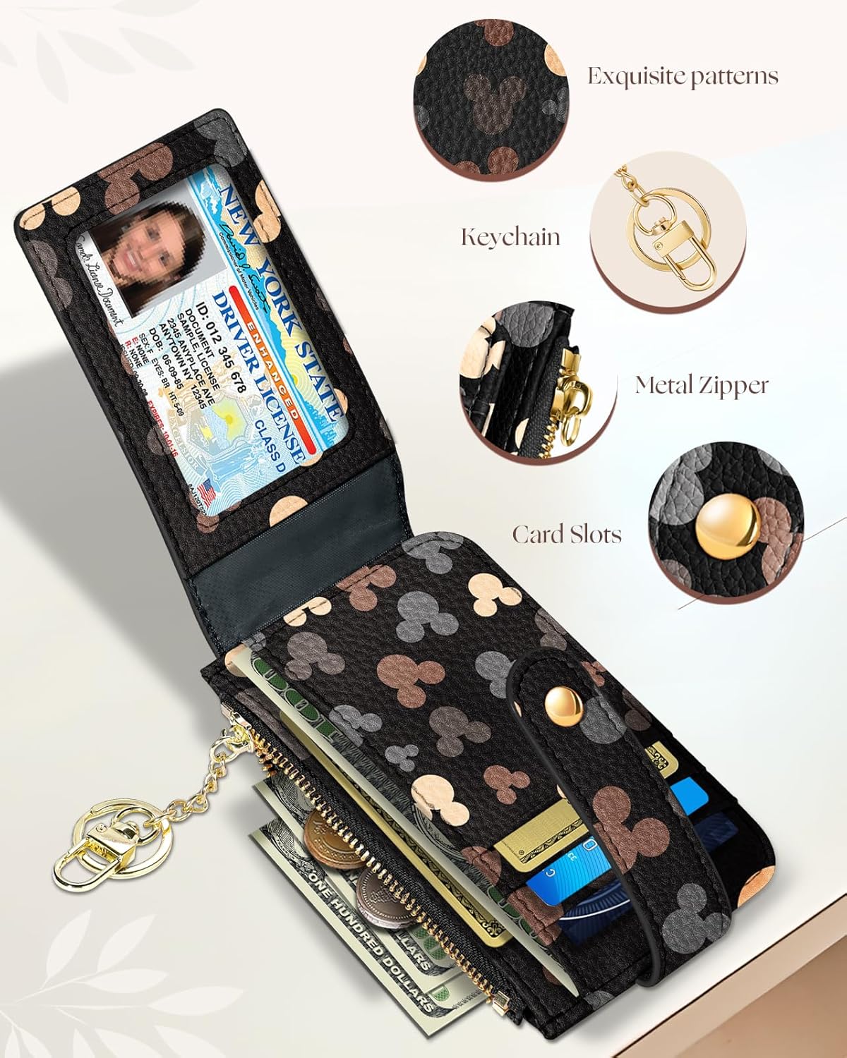 Leather-based Design: The pockets for girls is manufactured from high-quality leather-based materials, which is protected and sturdy, with clear and cute double-sided sample printing