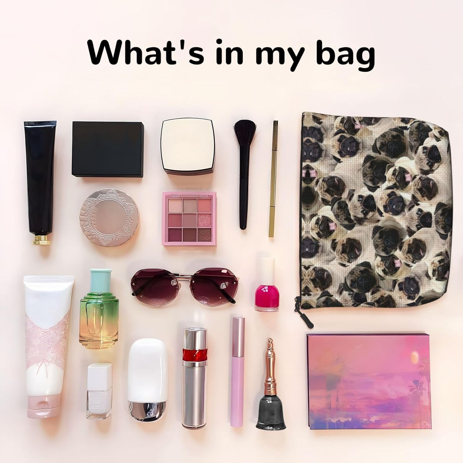 Giant Capability and Group: That includes a single spacious primary pocket, this zippered pouch supplies ample house to retailer your make-up, toiletries, and different necessities. The lovable Pug Print massive capability makes it for organizing your gadgets effectively.