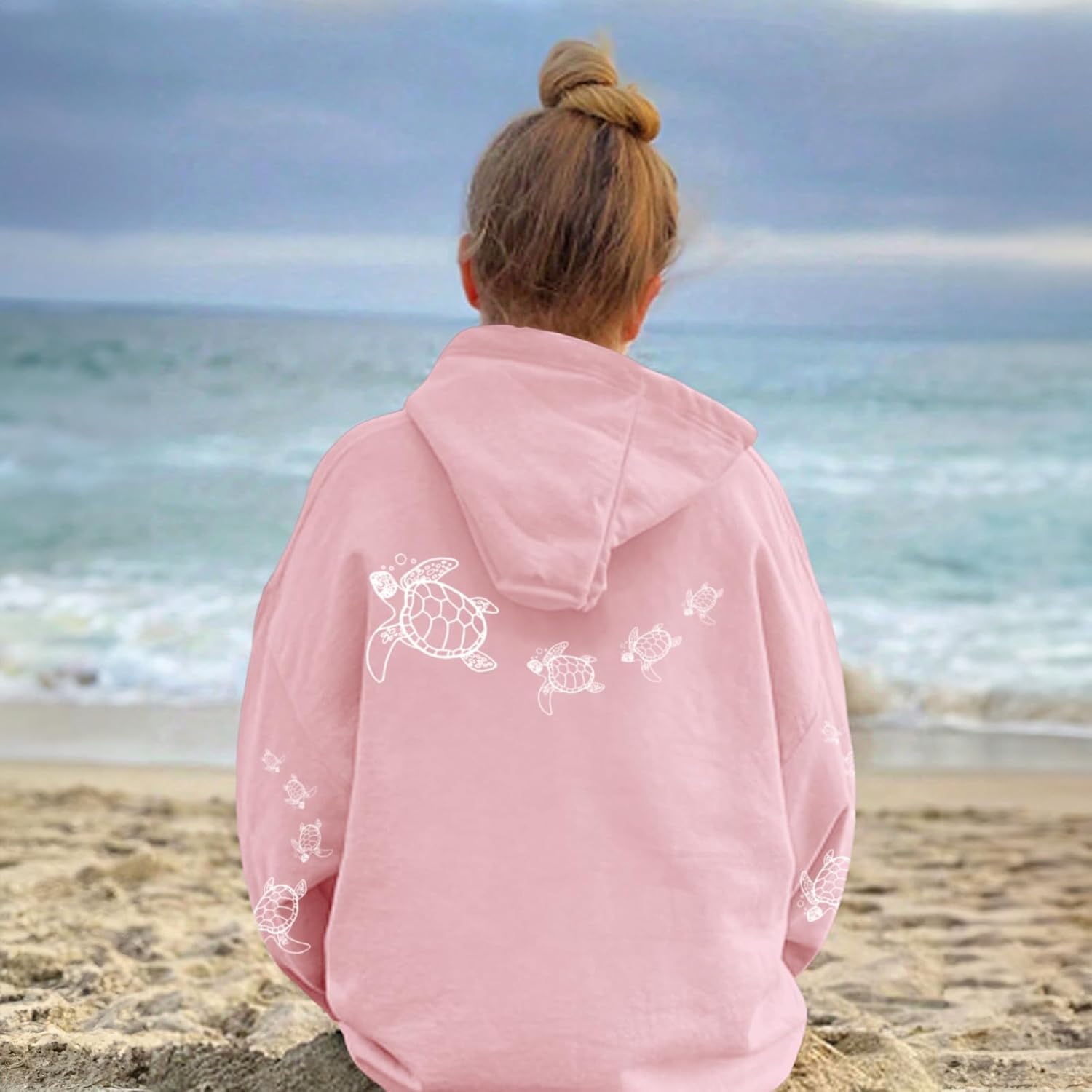 Lubpow Womens Cute Sea Turtle Hoodies Aesthetic Ocean Graphic Sweatshirts