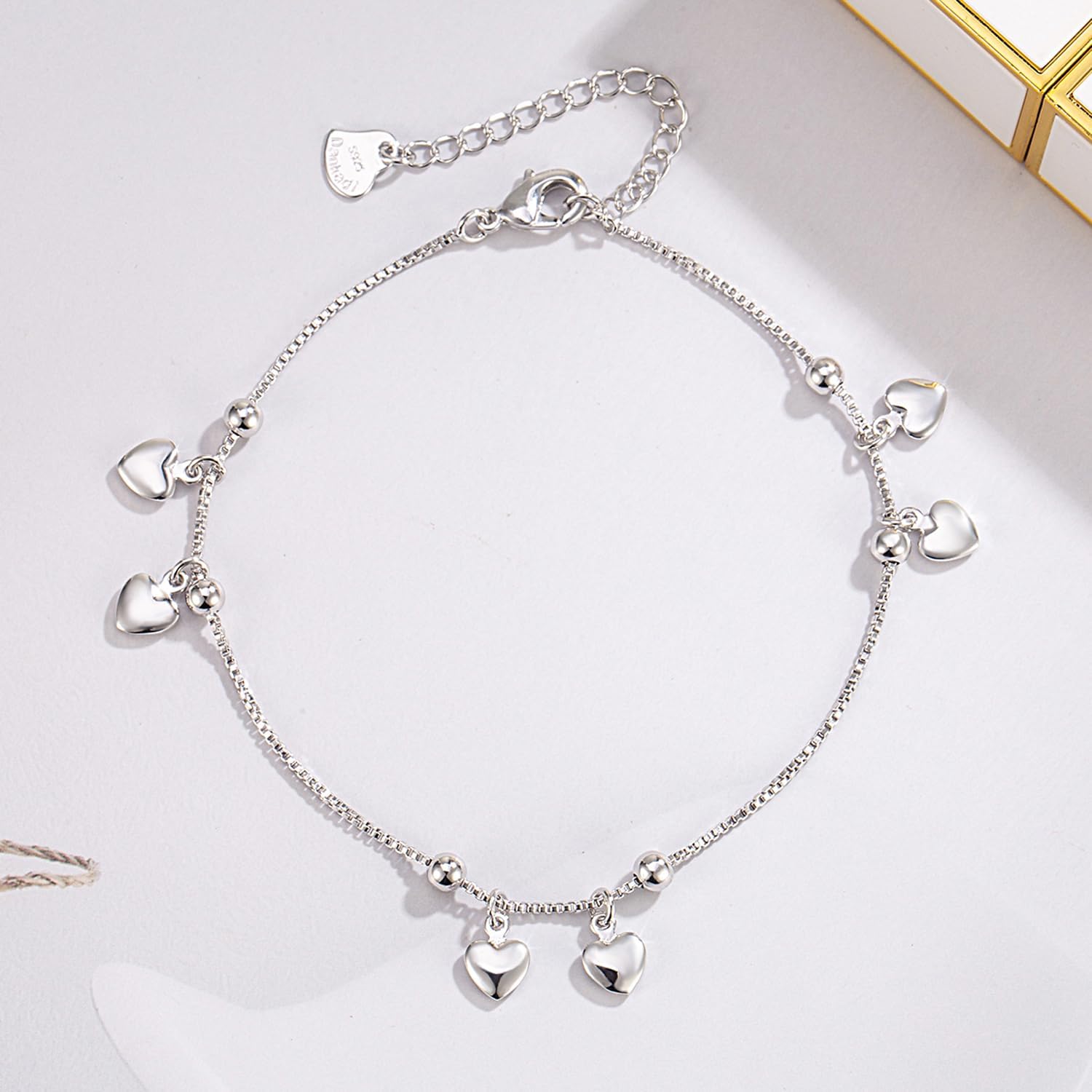 Elevate your type with this beautiful sterling silver Anklet and Braceletsadorned with delicate coronary heart charms. Crafted with precision and a spotlight to element, this elegant piece encompasses a modern chain interspersed with charming coronary heart pendants that add a contact of caprice and romance. The polished silver end radiates a timeless attract, making it a flexible accent appropriate for any event. Whether or not worn alone or layered with different bracelets, this fascinating design is bound to develop into a cherished addition to your jewellery assortment. Embrace its understated class and let it complement your private type with easy grace.