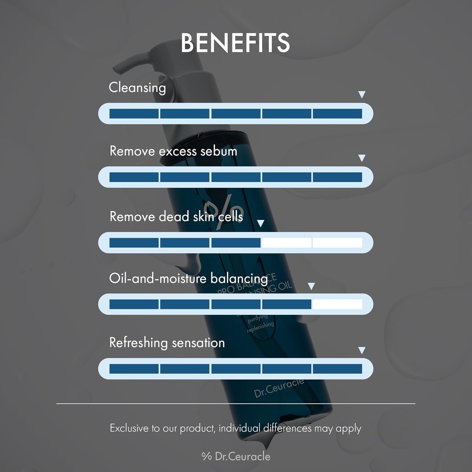 Dr.Ceuracle Pro Balance Pure Cleansing Oil – Makeup Sunscreen Remover Oil Cleanser, Korean Facial Cleanser with Hydrating Finish (155 ml / 5.24 fl. oz.)