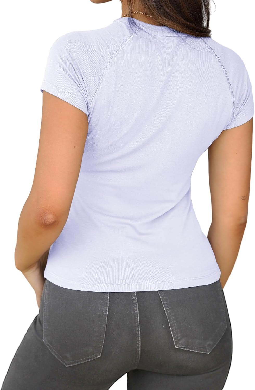 Dwnval Womens Basic Summer Short Sleeve Crewneck T Shirt Raglan Ribbed Knitted Slim Fit Casual Going Out Tops
