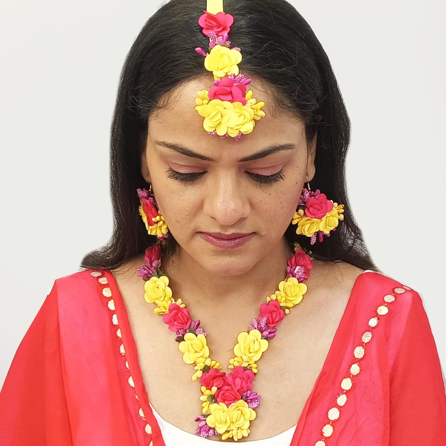 Be the first to review “Efulgenz Indian Flower Haldi Jewelry Set Handmade Jewelry Long Necklace Earrings Maangtikka Sets Indian Wedding Jewelry for Haldi Mehandi Fashion Costume Jewelry for Women”