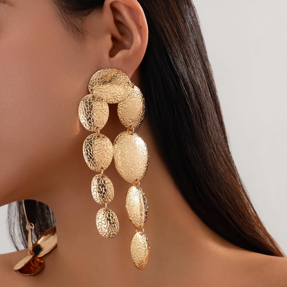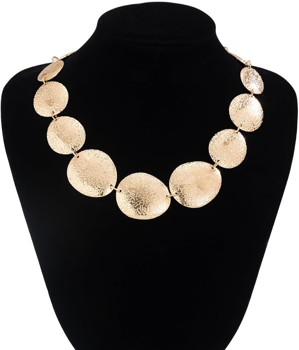 Elegant Gold Choker Necklace and Earring Set for Women, Textured Jewelry Set, Statement Necklace & Drop Earrings for Parties and Events