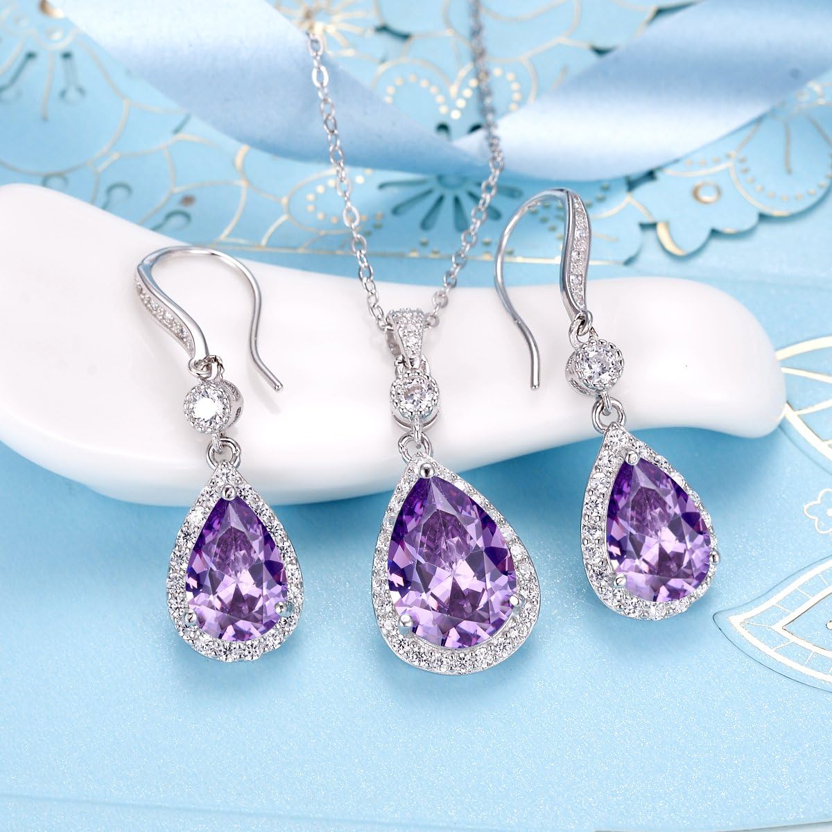 EleQueen 925 Sterling Silver Full Cubic Zirconia Teardrop Bridal Pendant Necklace Hook Dangle Earrings Sets for Women, Valentine’s Day/Mother’s Day/Christmas Jewelry Gift