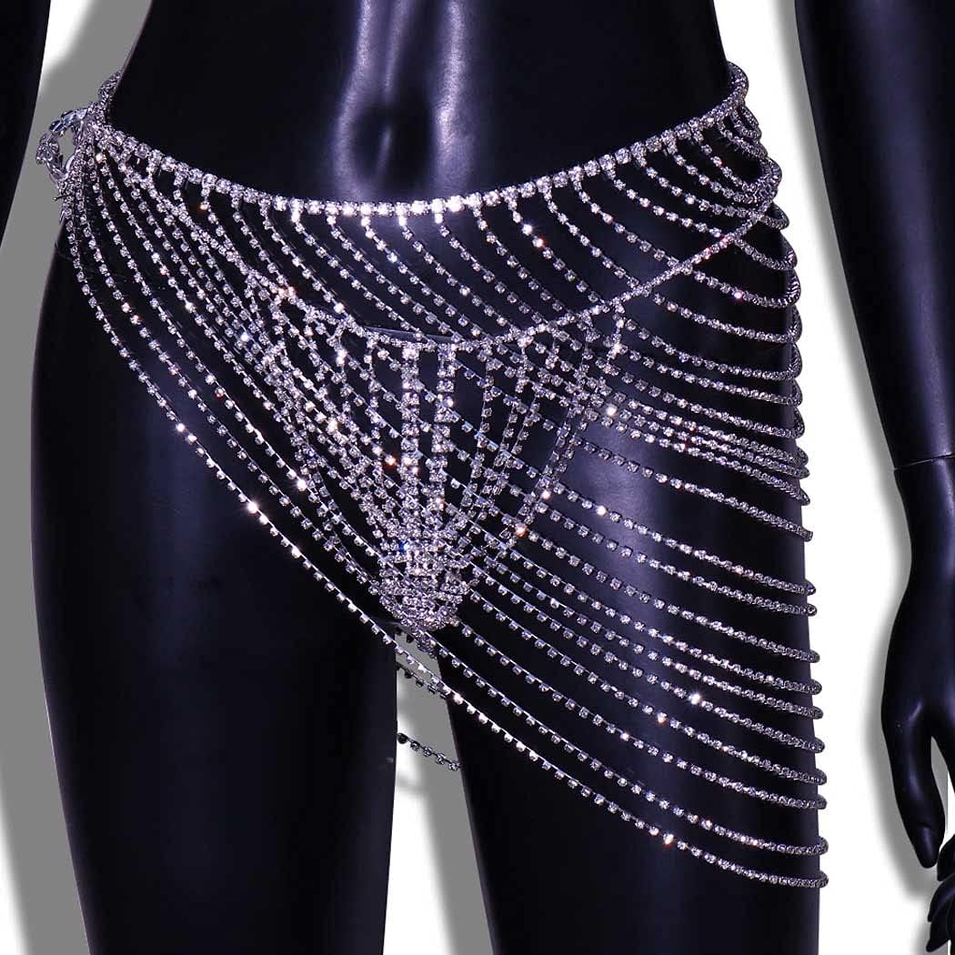 Glitter stomach chain has 2 pcs,one is rhinestone stomach skirt,different one is glitter panty chain.