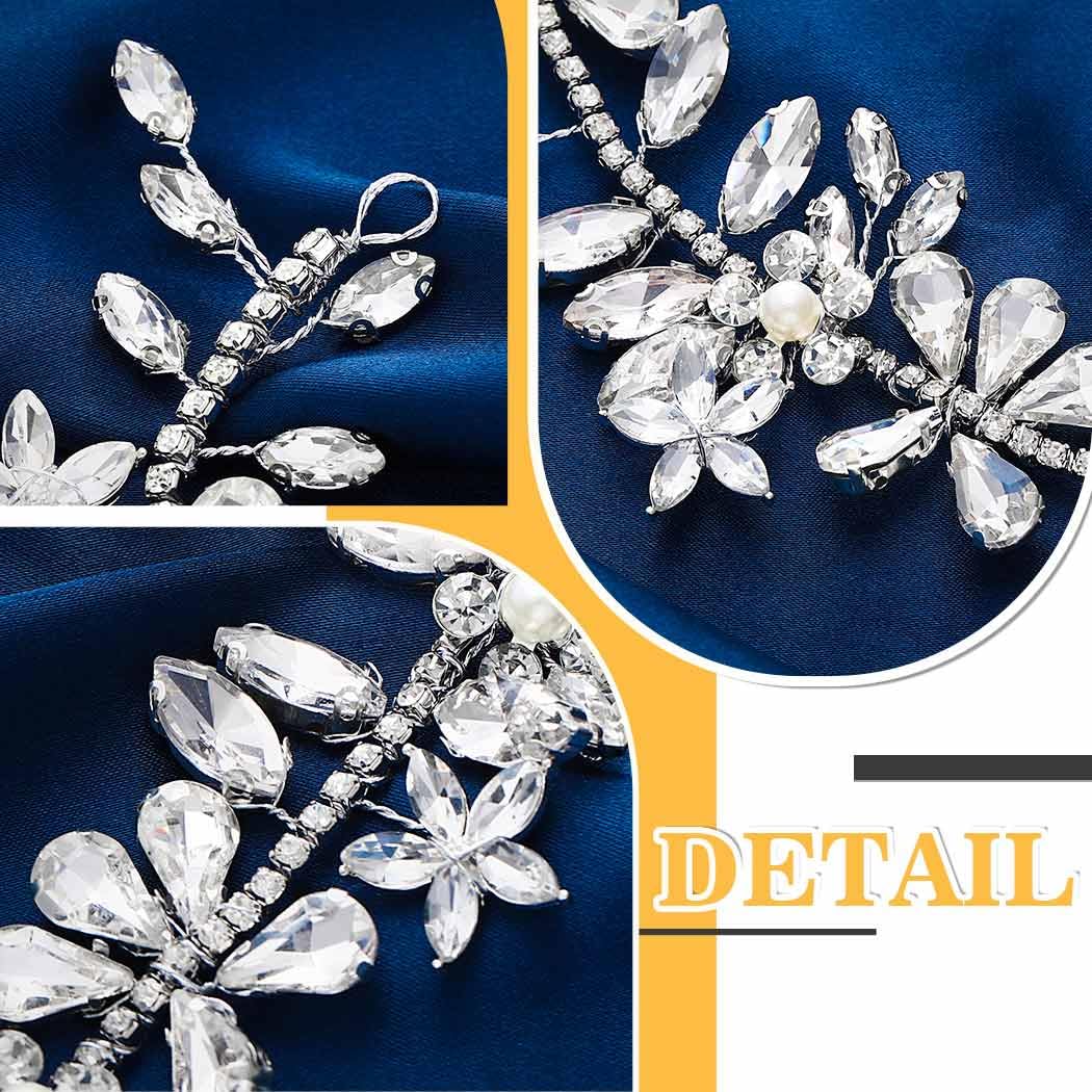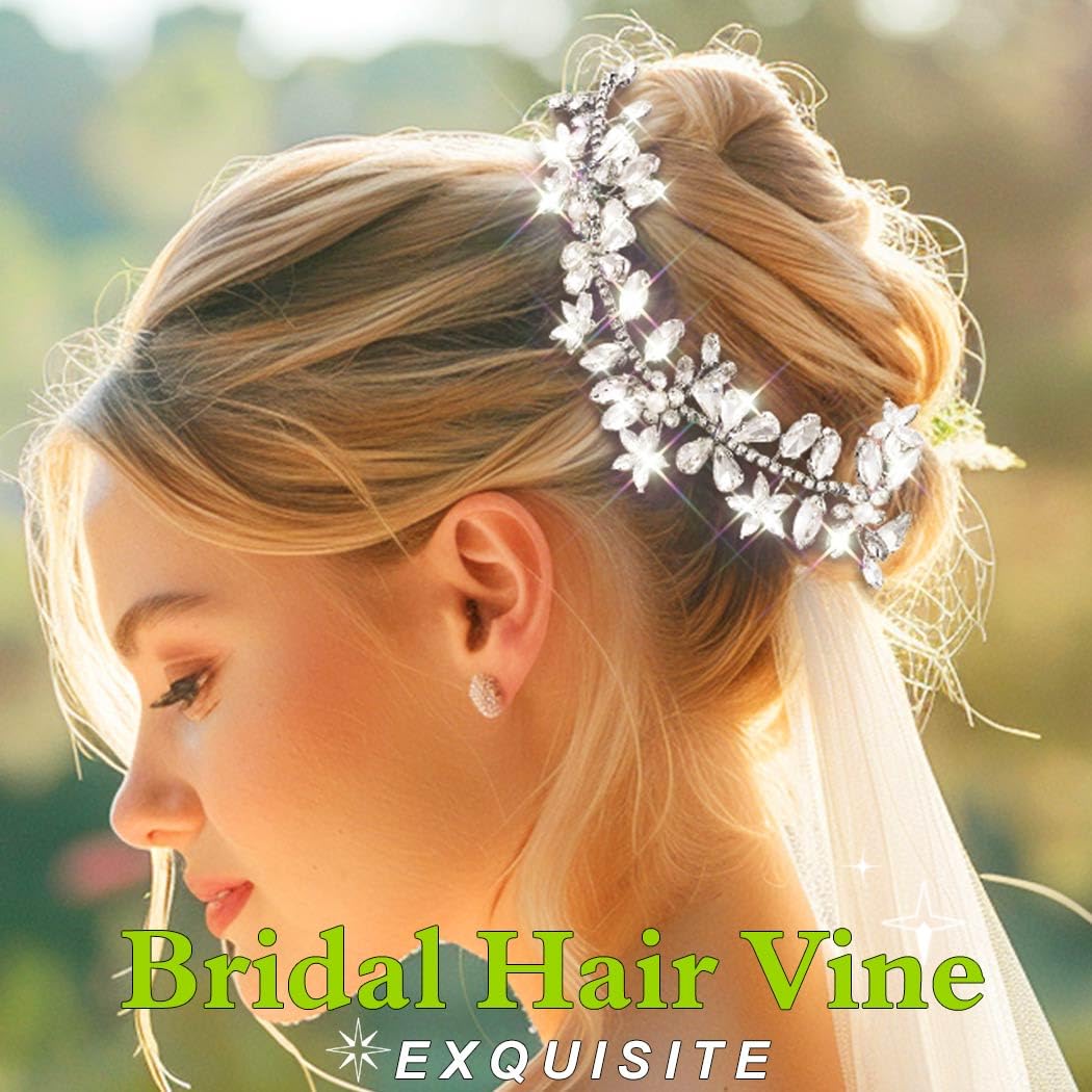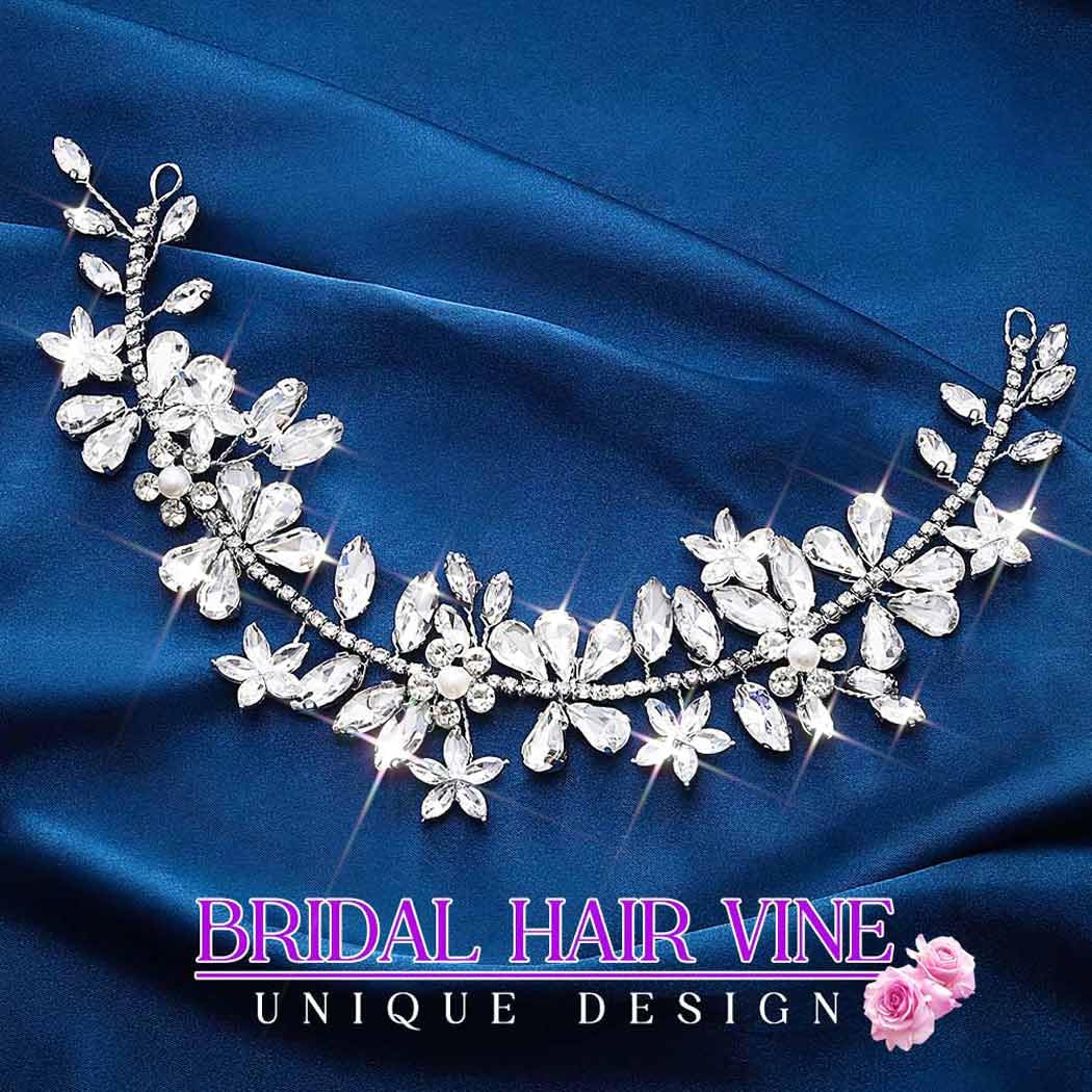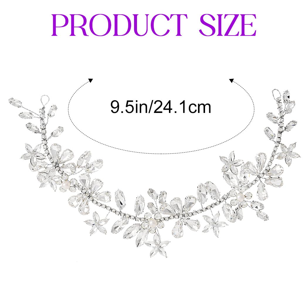 EVILD Rhinestone Bride Wedding Headpiece Silver Flower Hair Piece Crystal Bridal Hair Vine Accessories for Women (Silver, 9.5in)
