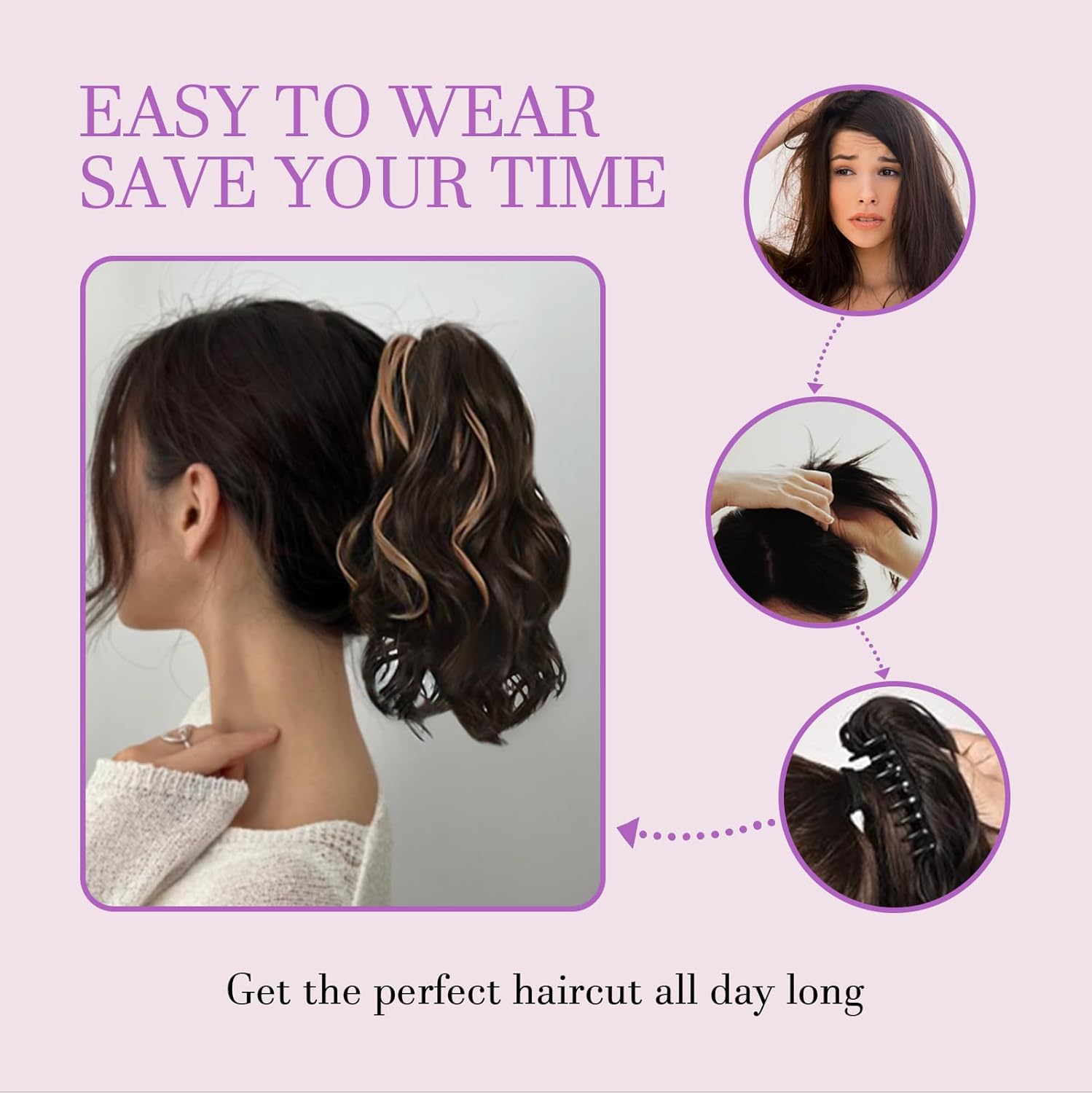 Fashionable Ponytail Hairpiece Easy To Use Claw Clip Extension Short Curly Hairpieces For Women
