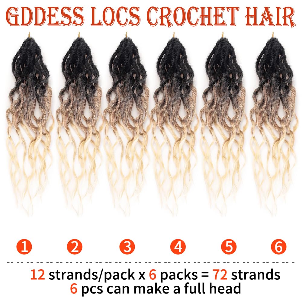 6 Packs 72 Strands Can Be Make Full Head:One pack is all you want for a full-head(6 packs of 18 inches, Every pack comes with free accent.River Locs Goddess Crochet Braiding Hair.Stunning and Trend, New Fashion, Actually Cute, Stunning Curls ends, Feeling Like Goddess, Trying Like a Queen .