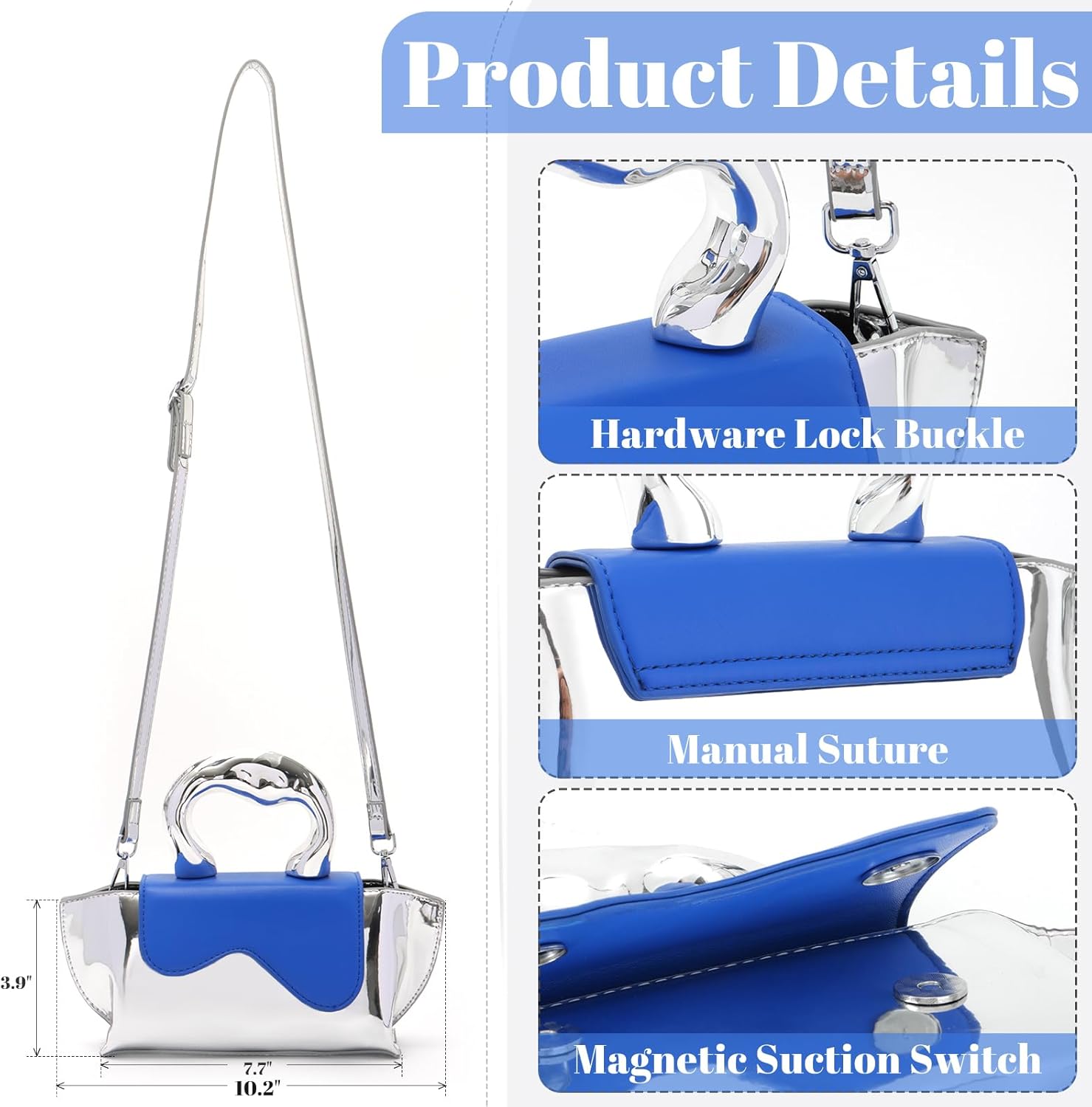 Girls Distinctive Silver Crossbody Baggage Y2K Night Bag Tote Purse Satchel Bag Small Cute Shoulder Baggage Hobo Purse