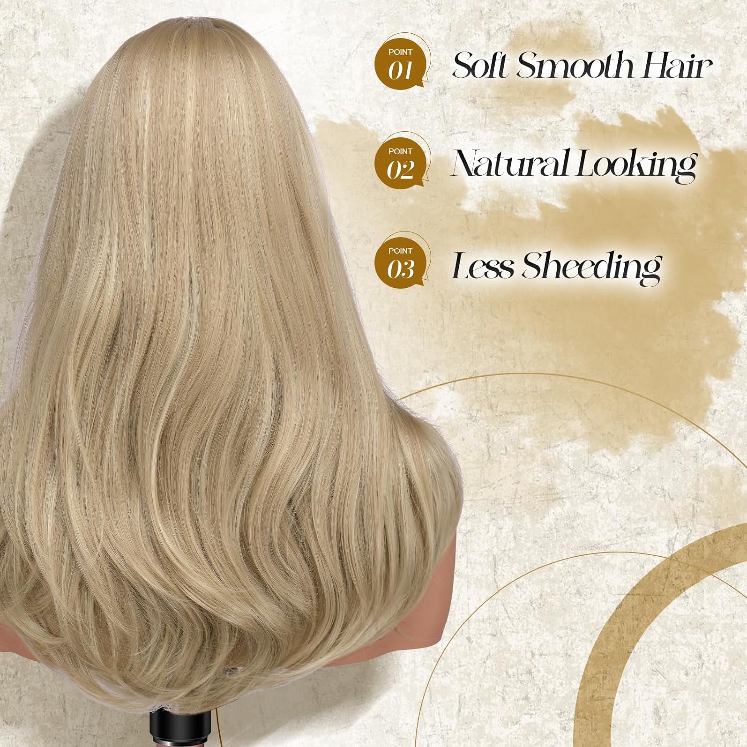 FESHFEN Long Wigs with Bangs, Synthetic Natural Looking Layered Straight Hair Wig for Women Daily Party Costume, 18 inch Mixed Blonde