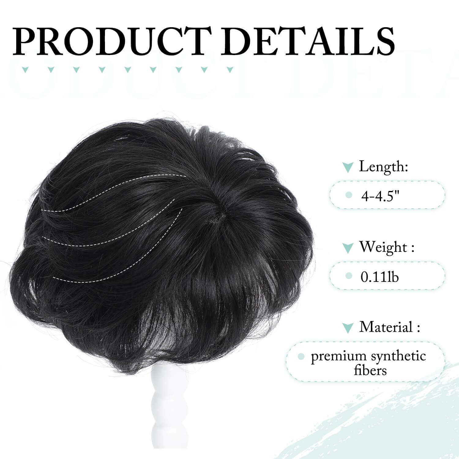 Fine Plus Hair Topper 6.8″ x 7″ Pixie Cut Short Hair Toppers for Women Fluffy Synthetic Hair Topper Clip in Top Wavy Hair Pieces Natural Black Replacement Wiglets
