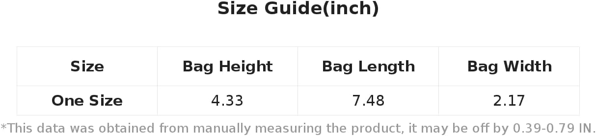 one-size:Bag Top:4.3IN,Bag Size:7.5IN,Bag Width:2.2IN