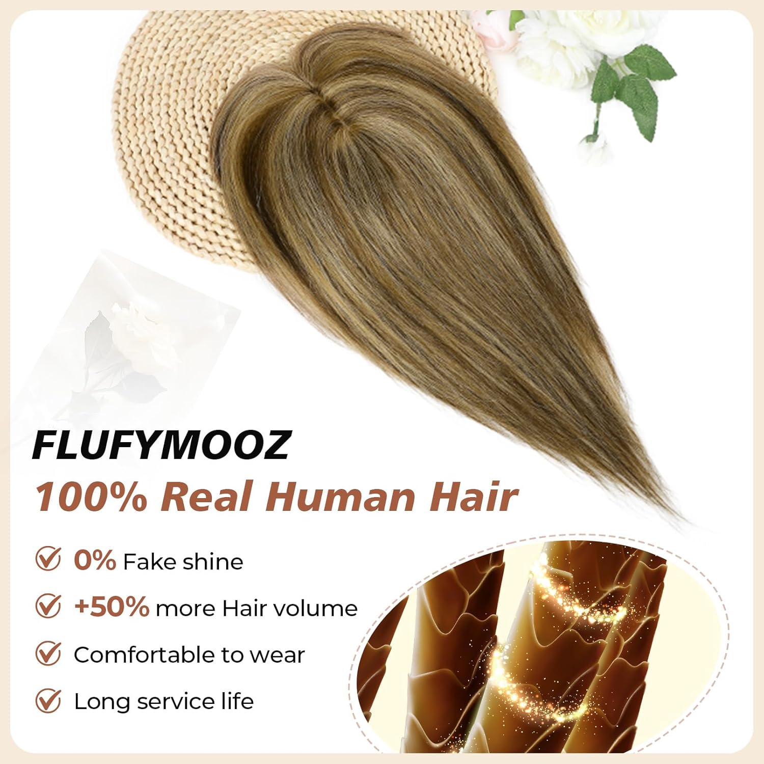 [100% Real Human Hair Topper with Bangs]: The hair toppers are product of 100% actual human hair with clip in wispy bangs, it’s tender, clean, and straightforward to fashion as your personal hair. Additionally, FLUFYMOOZ hair toppers add 50% extra quantity than related merchandise and really feel the fuller impact.