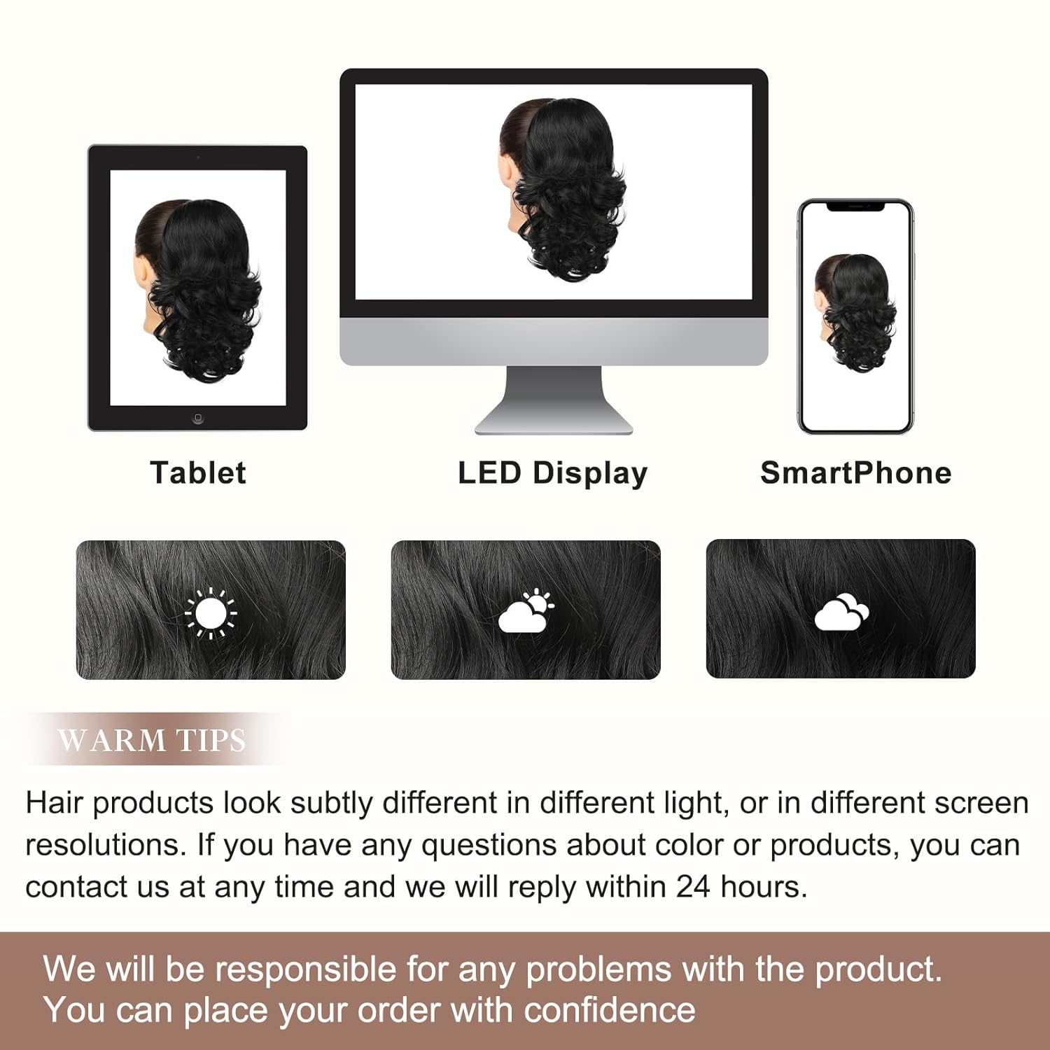 [Natural Style]: Crafted from unique artificial fibers, our 14-inch Drawstring Ponytail Extension is a delicate, light-weight, curly layered design on the finish and appears identical to actual hair! The ponytail offers you an effortlessly pure look.