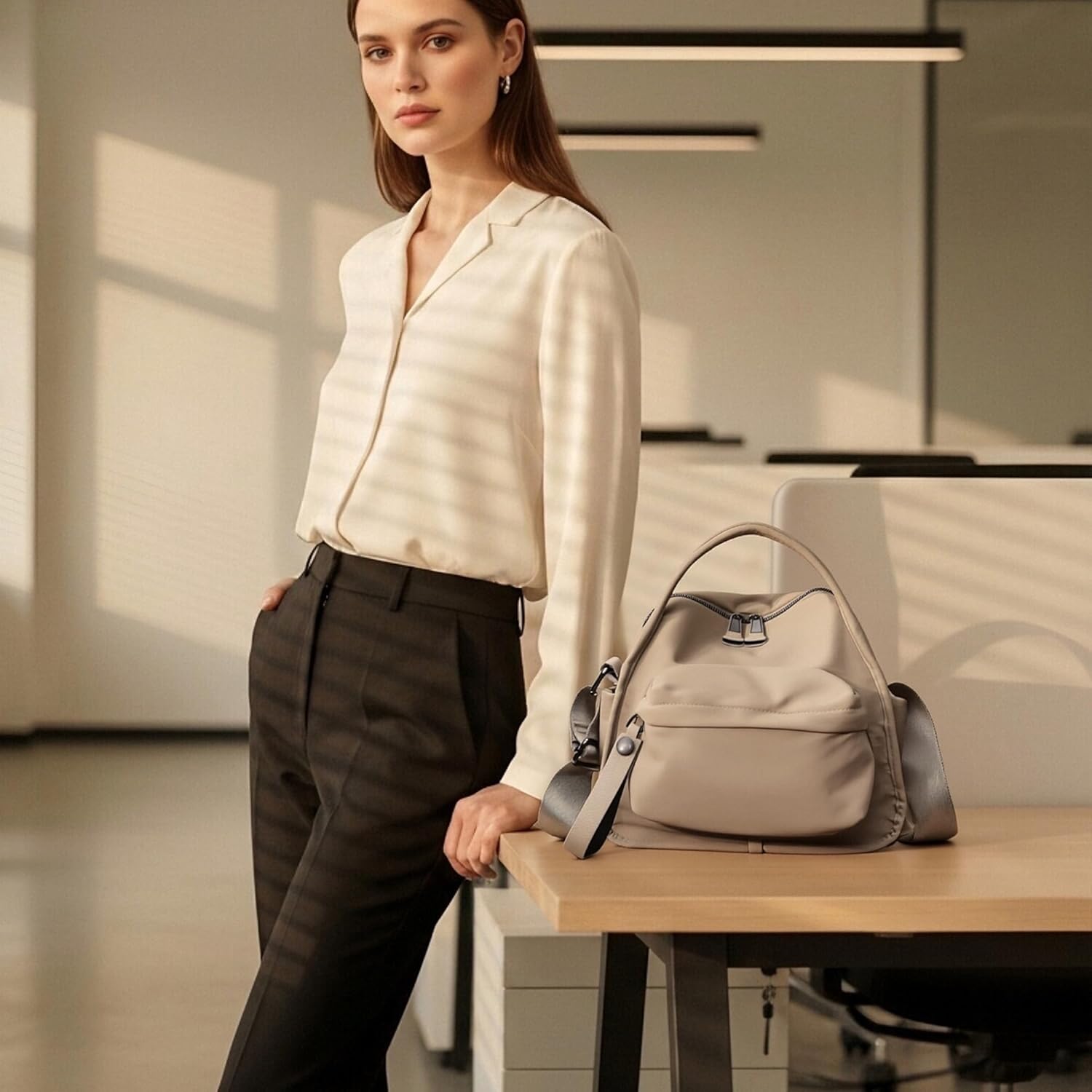 3 Beige Nylon crossbody bag