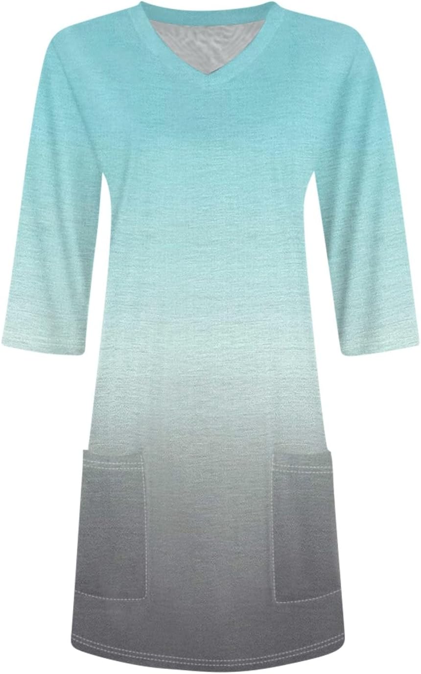 3/4 Sleeve Tops For Girls Summer season V Neck T Shirts Outsized Tshirts With Pockets