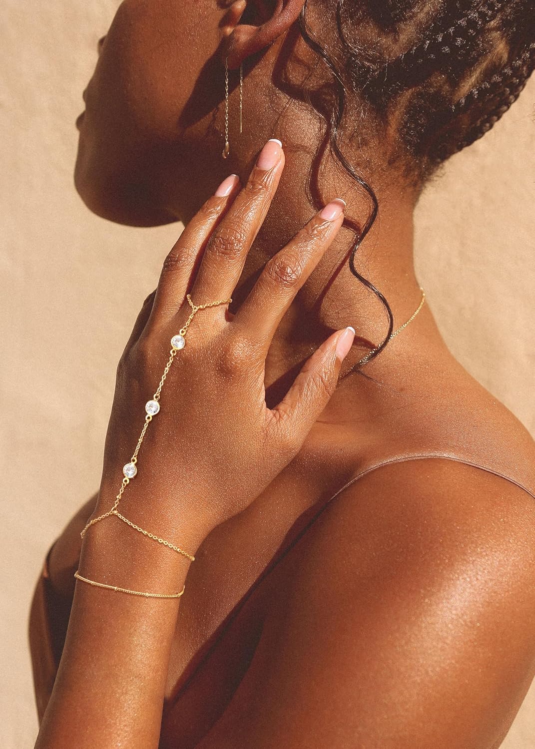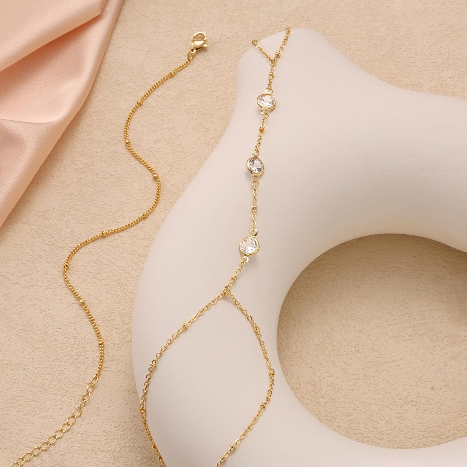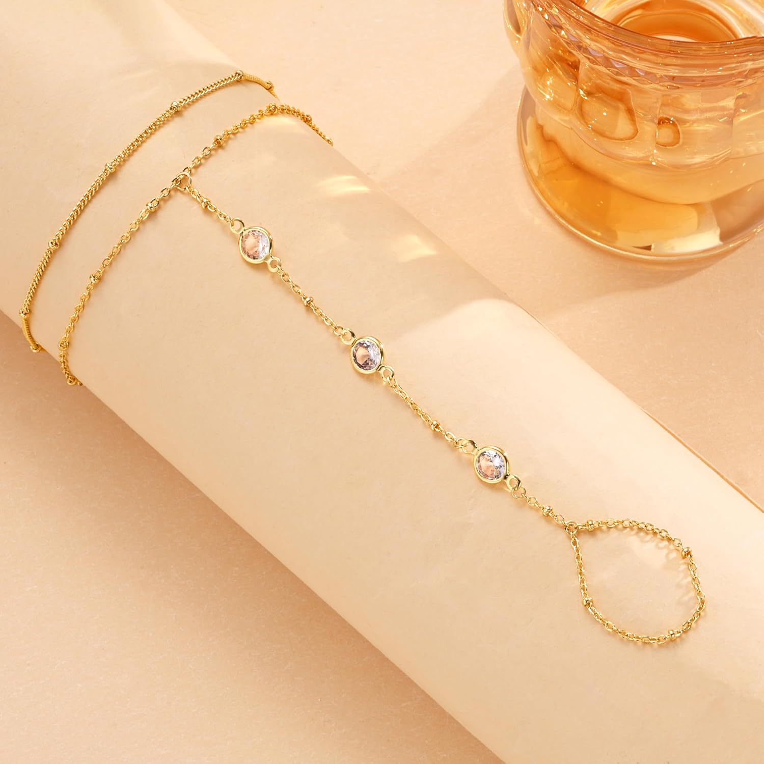 Freekiss Gold Hand Chain Bracelets for Women Trendy: 14K Gold Dainty Finger Ring Bracelet Stack Hand Chain Set Adjustable Link Hand Chain CZ Beaded Paperclip Bracelets Non Tarnish Women Jewelry
