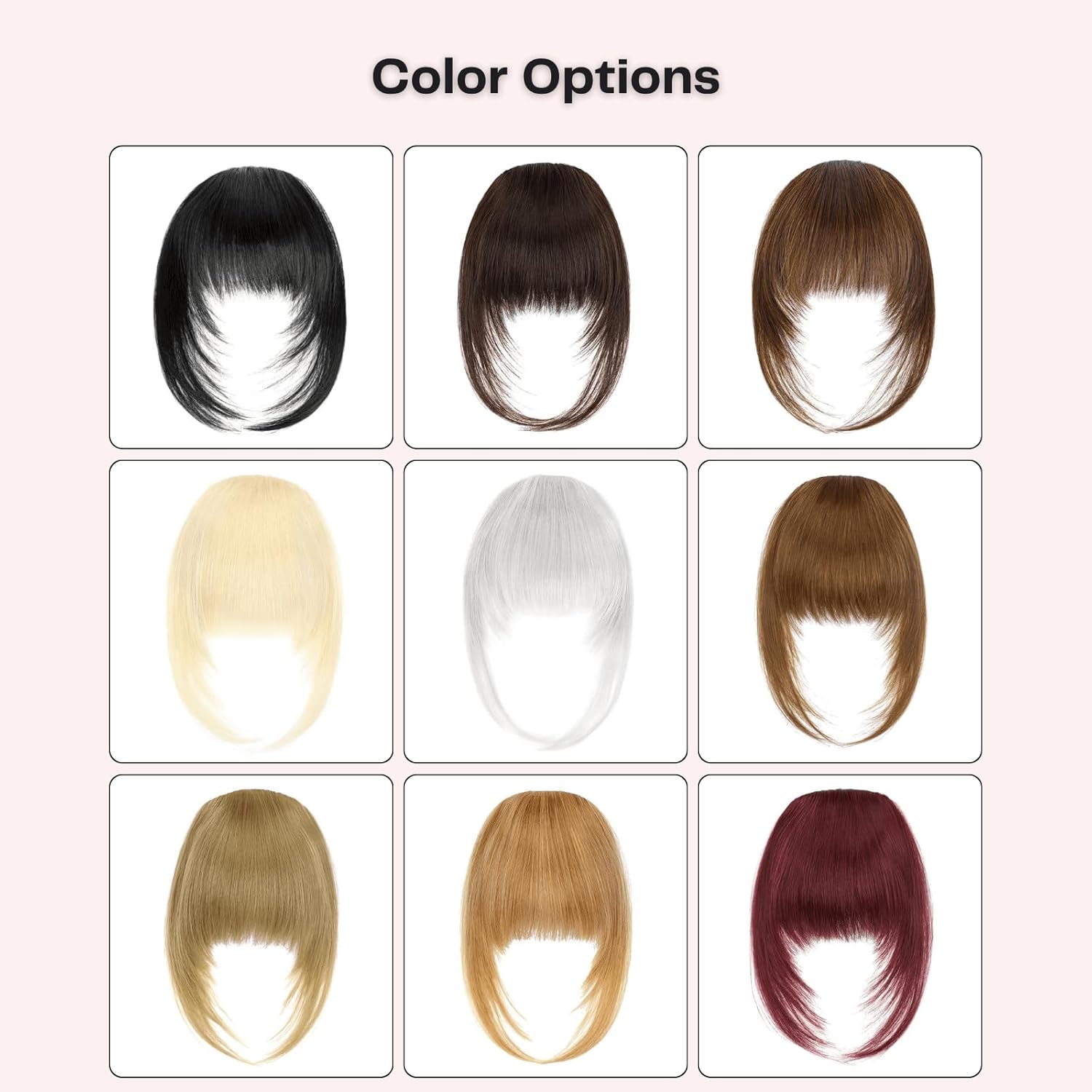 Weight: 17 grams. 2 snap clips inside. French bangs thick hair fringe for Ladies. Invisible edge, pure fusion with hair, extra appropriate for the curve of the pinnacle. Light-weight, snug, and pure.