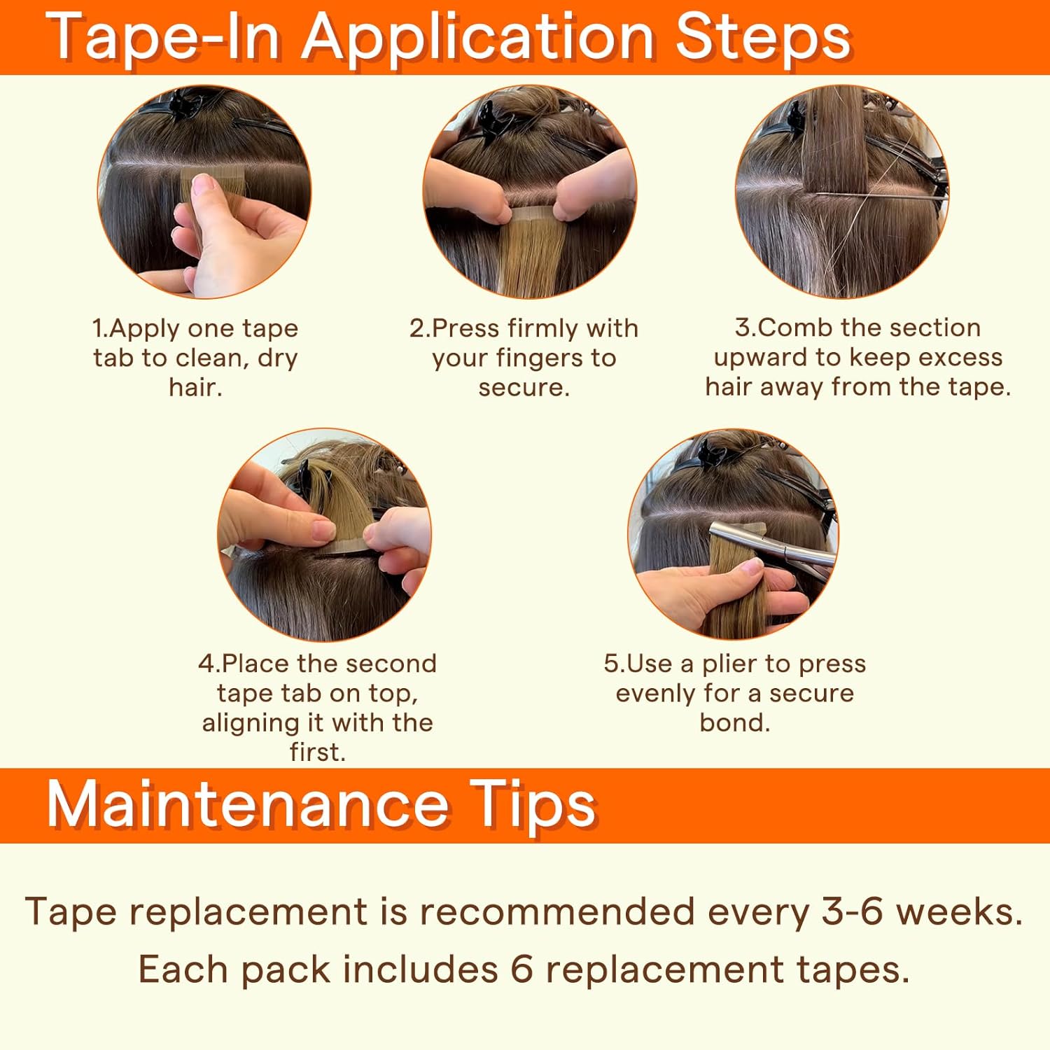 Set up Information: Use the “sandwich” technique for a safe bond; align the 2 tape items with a skinny part of your hair to forestall slipping; gently press the tapes with a straightener, however keep away from making use of extreme warmth on to the tapes