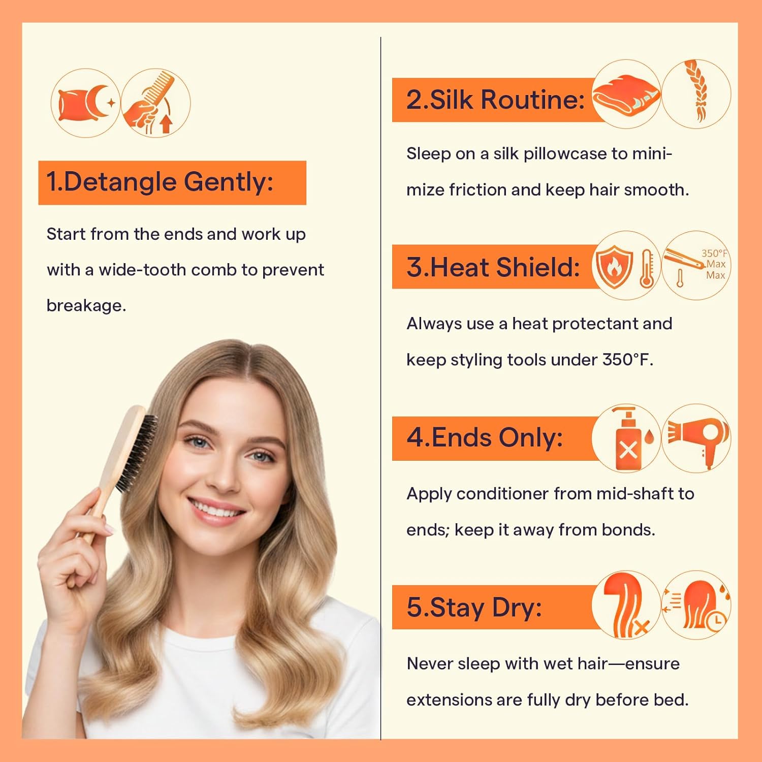 Gently pat dry with a towel and blow-dry on low-medium warmth till half-dry, then apply hair oil, then gently detangle with a wide-tooth comb from the ends upward. We suggest washing two-three instances per week, avoiding the bonds.