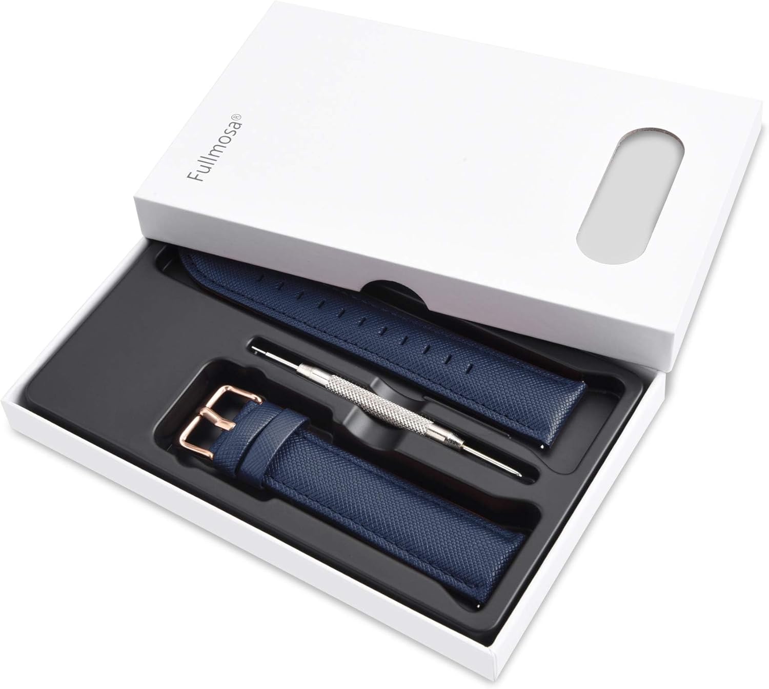 Fullmosa Leather Watch Band 14mm 16mm 18mm 20mm 22mm 24mm, Soft Genuine Leather, Quick Release Replacement Watch Strap for Women and Men, 20mm, Dark Blue+rose gold buckle