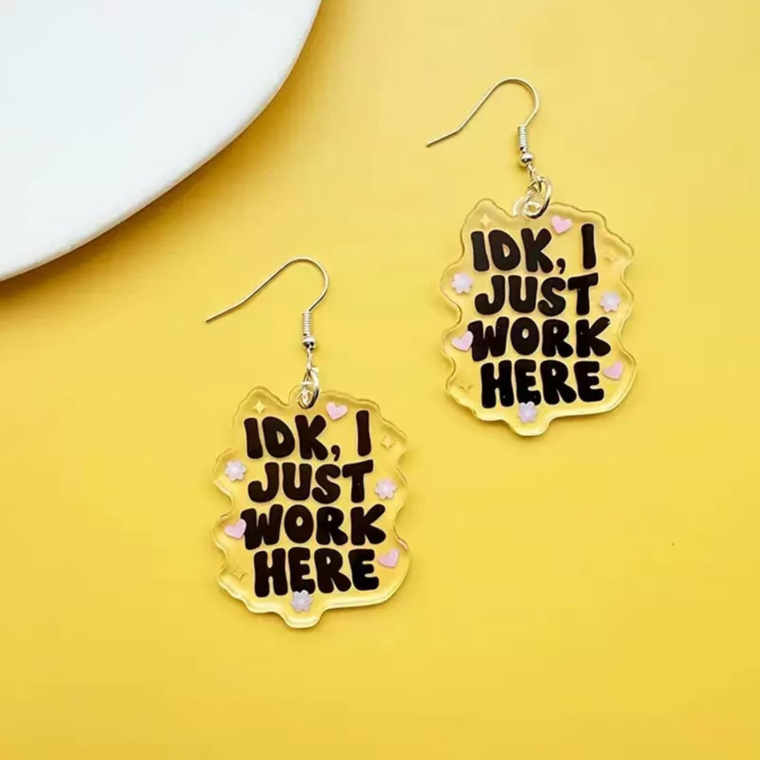 Inventive Design: These earrings are an ideal mix of humor and personalization. Crafted with a contemporary aesthetic, every earring options the witty phrase “IDK I Simply Work Right here” inscribed in a enjoyable, eye – catching font. The earrings are comprised of acrylic, guaranteeing sturdiness and a refined look. Whether or not for an off-the-cuff time out or a light-weight – hearted occasion, they’re positive to attract consideration and unfold some laughter