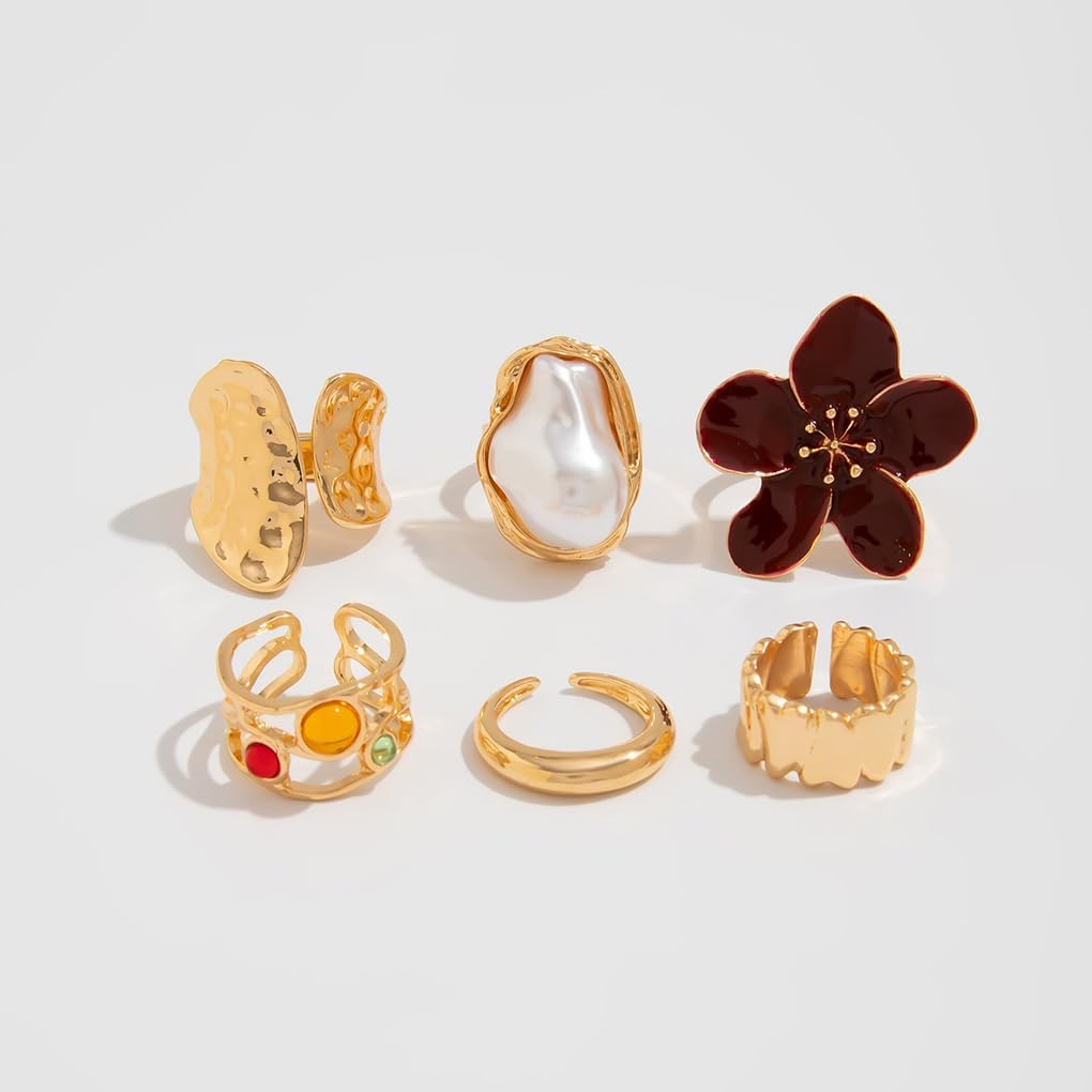 Chunky Pearl Flower Knuckle Rings Set:Carry the warmth with this retro 18k gold chunky irregular pearl flower midi rings set! Mixing trend huge baroque pearl vibes with floral titanium metal assertion joint finger rings, it’s all about daring, edgy appeal. The charming stacking flower open knuckle rings add a playful, vintage-inspired twist—suppose irregular pearls paired with chunky gold petals for a glance that’s equal elements timeless and classy