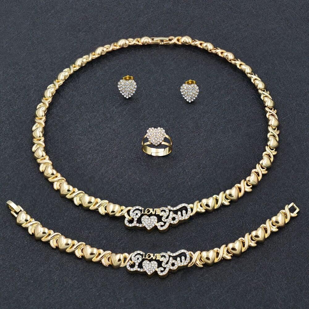 [Material] 14K gold Crammed + Nature Rhinestone Jewellery Set for girls [Package] Single unbiased card packaging [4 Jewelry set] 1 Necklace + 1 Ring + 1 Bracelet +1 Earrings [Description of supply] All merchandise of the corporate are self-produced and bought, with 10 years of manufacturing expertise, good high quality