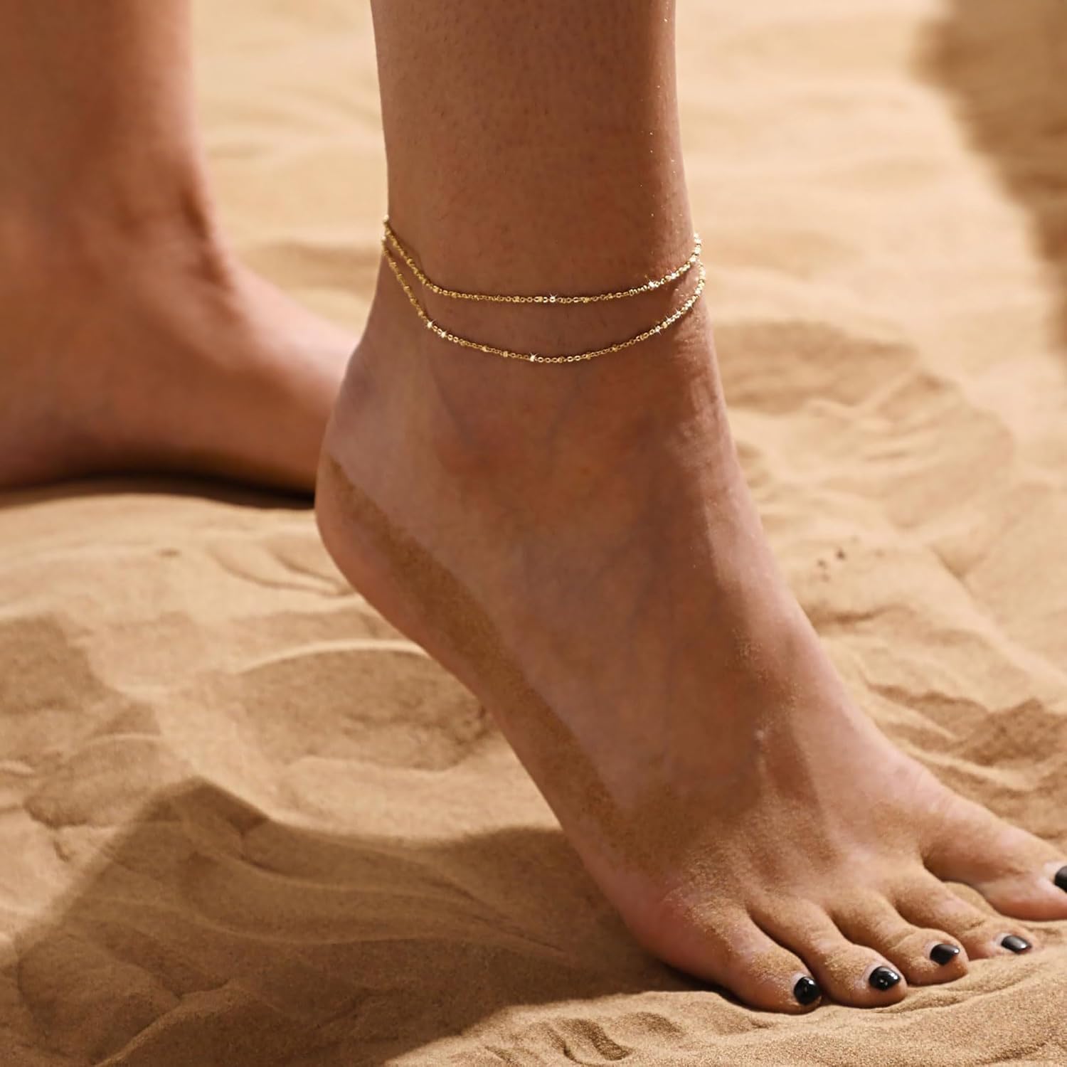 Gold Ankle Bracelets for ladies,14k Gold/Silver Plated Waterproof Layered Cuban Hyperlink Figaro Coronary heart Anklet Pearl Ankle Bracelets Set for Summer season Trip Jewellery
