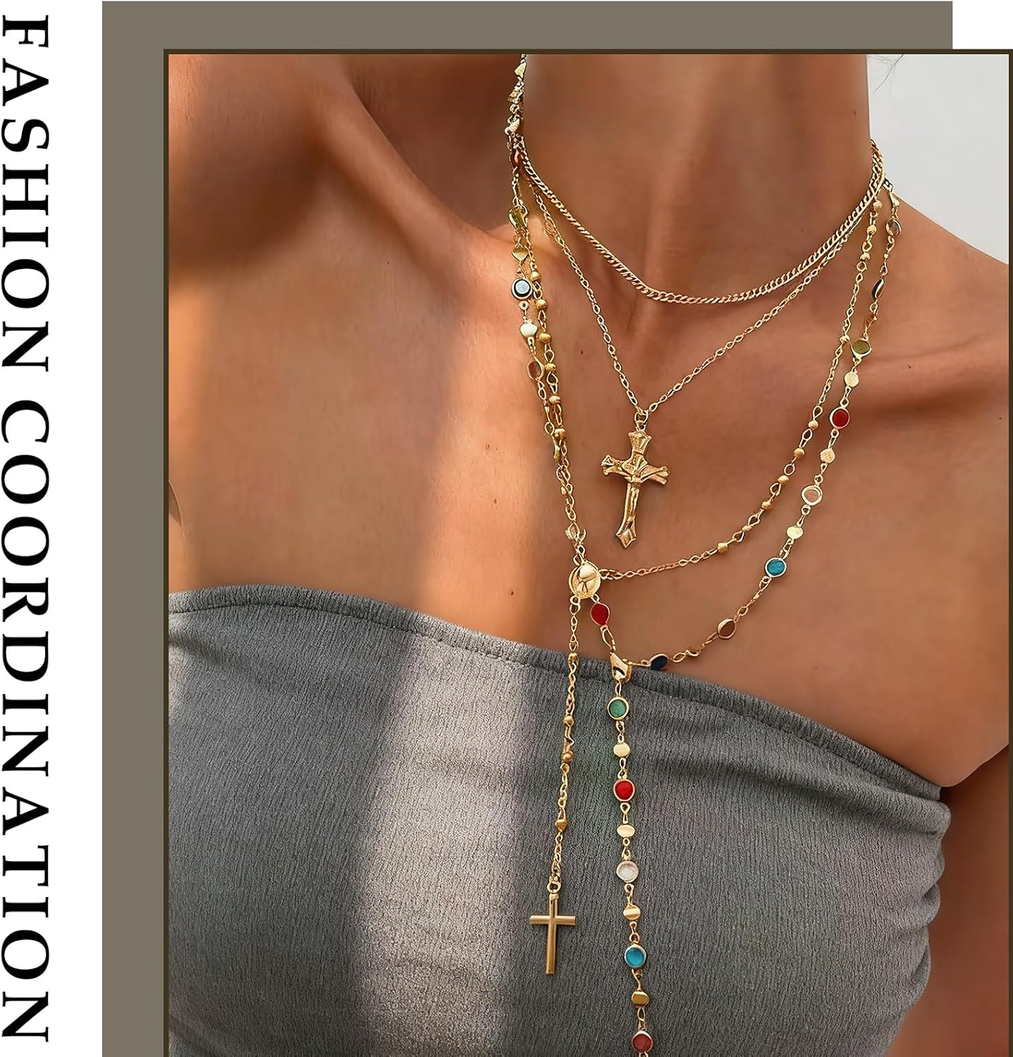 Elevate your fashion with this Gold Cross Layered Necklace Set for Ladies, designed so as to add class and attraction to any outfit. This trendy layered chain includes a delicate gold cross pendant paired with a colourful crystal drop necklace, making a timeless and attention-grabbing look. Good for informal put on, events, or particular events, this piece brings collectively faith-inspired design and trendy style. Crafted from high-quality alloy and rhinestone supplies, this necklace provides sturdiness with a light-weight, comfy match. The gold plating provides a long-lasting shine, whereas the colourful crystal drop offers a pop of coloration and class. Its layered tassel and chest chain design create a stylish stacked look that enhances your neckline superbly, making it a flexible accent for any wardrobe. Whether or not you’re dressing up for an evening out or including sparkle to your day by day outfit, this layered gold cross necklace makes a shocking selection. It’s supreme for ladies of all ages and makes a considerate present for birthdays, anniversaries, Valentine’s Day, or Christmas. Pair it with clothes, blouses, or night put on to precise your fashion with class and confidence.