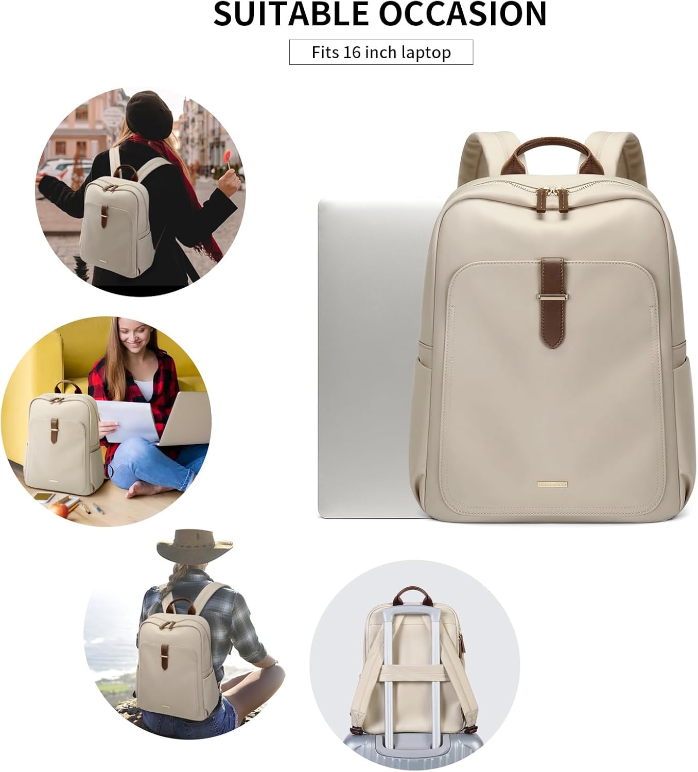 GOLF SUPAGS Laptop Backpack Purse for Women Fits 16 Inch Notebook Casual Daypack Work Travel College Bookbag Fashion Computer Bag (Apricot, 16 Inch)