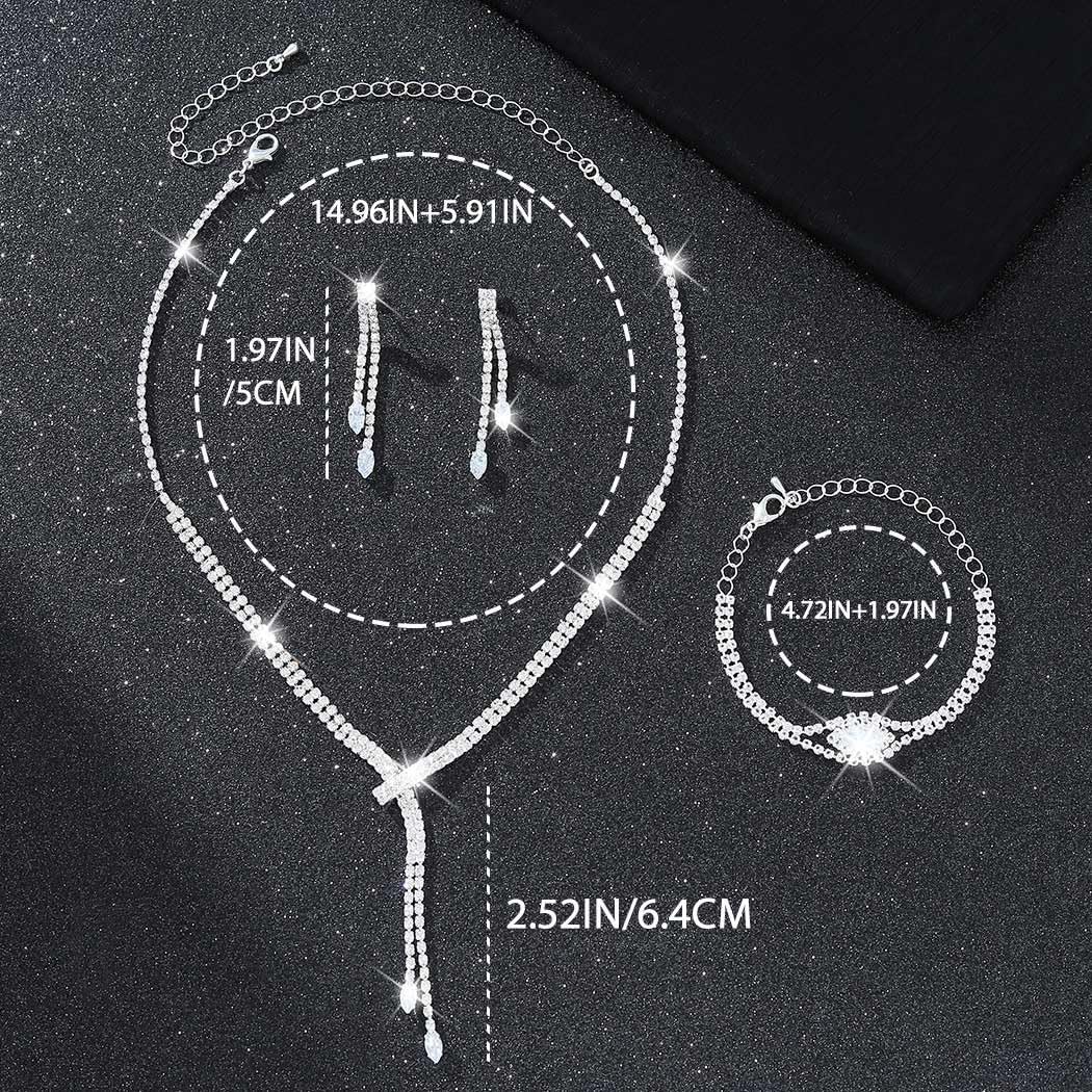 GORAIS Rhinestone Necklace Earring Units Silver Bridal Jewellery Set for Marriage ceremony