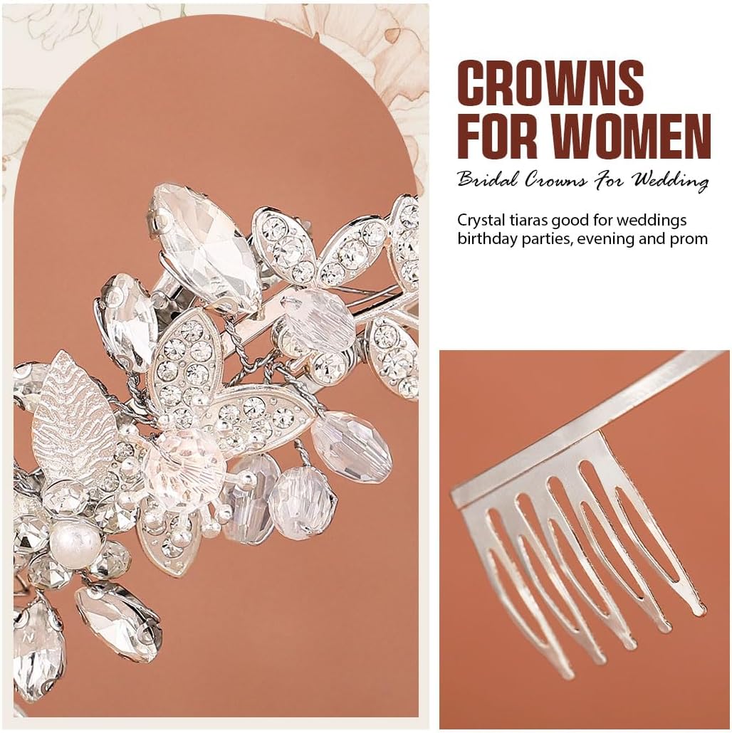 Gortin Rhinestones Tiara and Crown Silver Bride Wedding Headband Crystal Tiara Bridal Headpiece Hair Accessories for Women