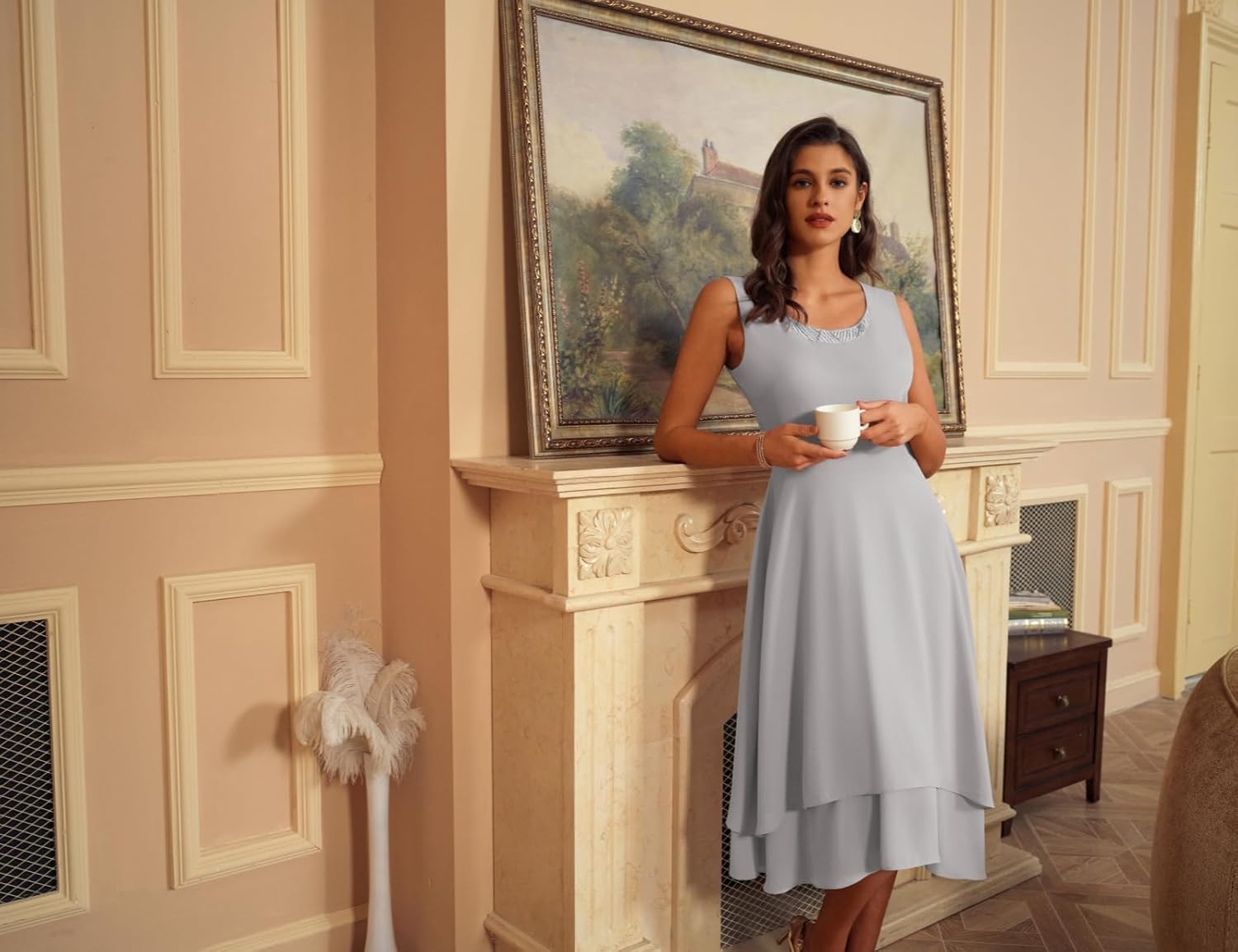 Marriage ceremony Chiffon Sequin Formal Attire Tea Size Grandmother Attire with Jacket