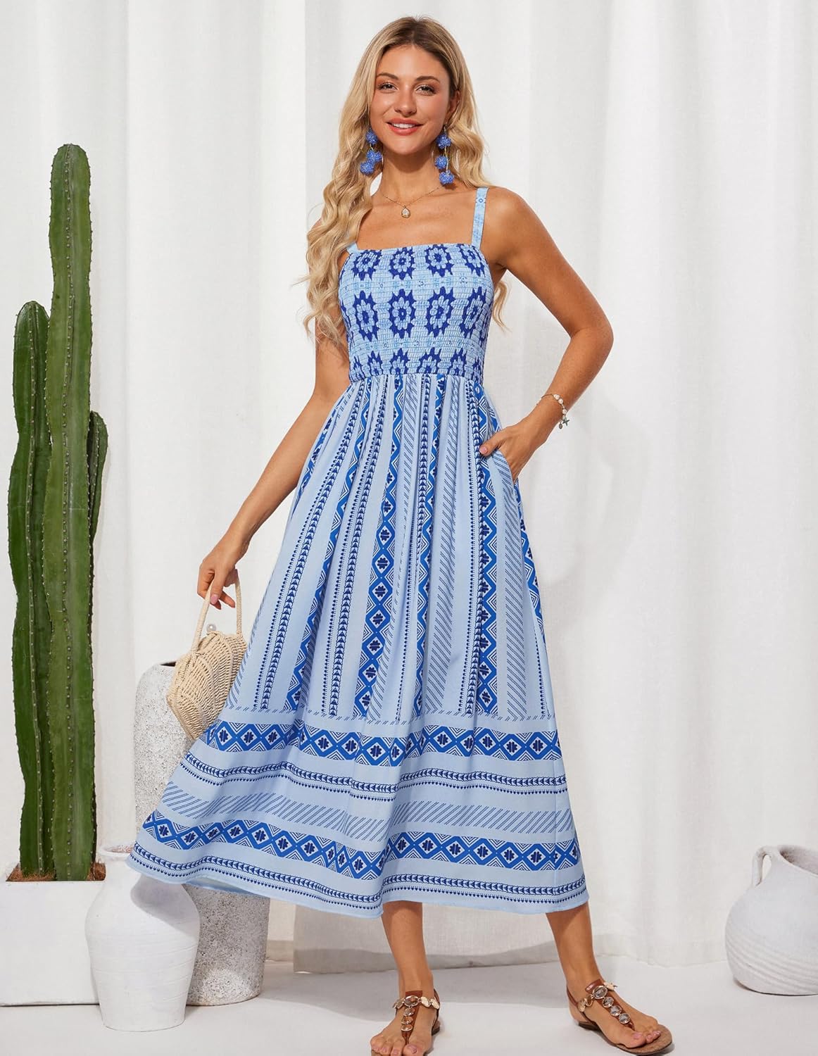 Spaghetti Strap Attire for Ladies Summer time Sleeveless Smocked Maxi Gown Sundress