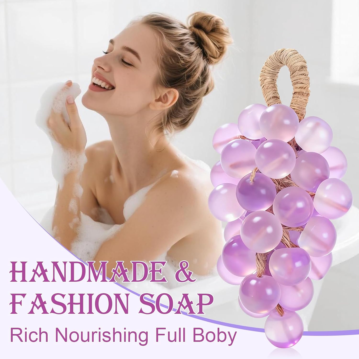 【Distinctive Ornamental Design】: Formed like a cluster of grapes with an connected rope, this handmade crystal grape cleaning soap doubles as charming rest room decor and permits simple hanging storage.