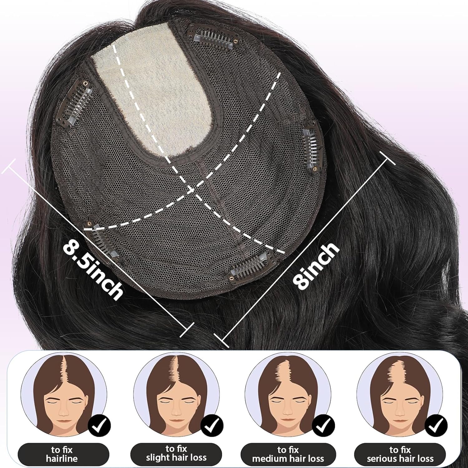 【Relevant Inhabitants】:Appropriate for individuals with gentle, reasonable and even extreme hair loss, or ladies who have to considerably enhance hair quantity, the scale of our backside internet is 8.5inch*8inch, so long as the hair loss space on the highest of your head is lower than this measurement, Our merchandise are excellent for you. The fantastic thing about these wiglets is that you would be able to make them a terrific different to a heavy full wig.You may immediately achieve pure fluffy hair quantity.