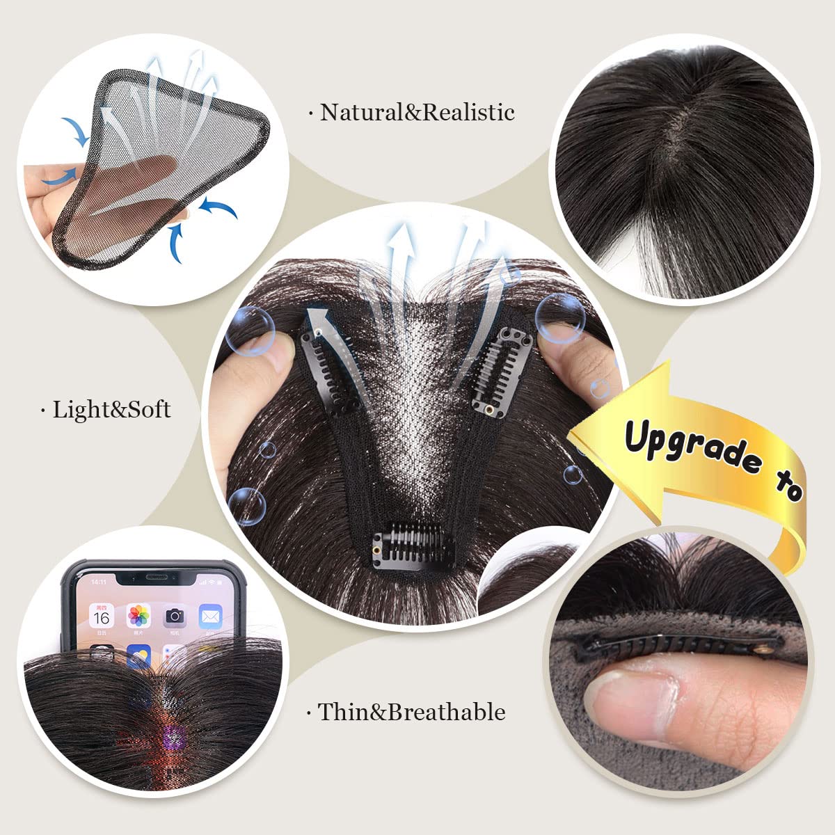 Handmade lace base hair toppers, Pure and comfy to put on, Very gentle, smooth, lifelike and breathable3 non-slip clips, extra secure & snug to put on,Just a few second to put on, straightforward to make use of, save time