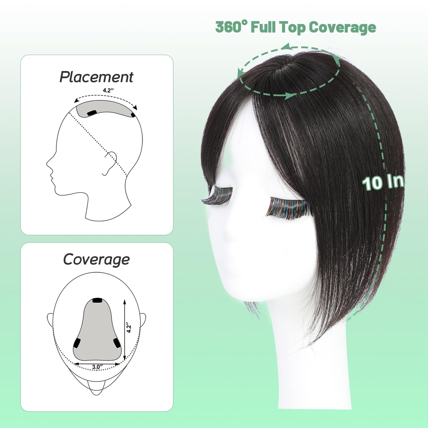 Hair Toppers for Women Remy Human Hair Pieces for Women with Thining Hair Thick Hairpieces Adding Extra Hair Volume Handmade 7 * 11CM Clip In Toppers 10inch