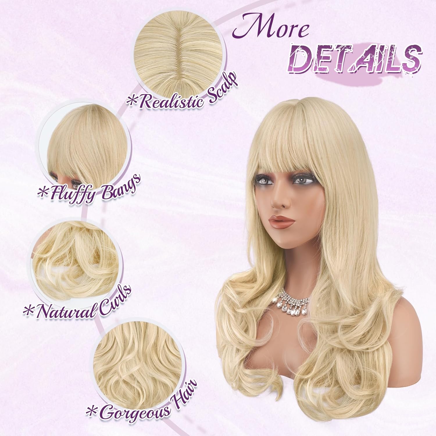 Hair materials: made of warmth resistant artificial fibers, the wig not solely has a tender texture and pure coloration like actual hair, but in addition works with hair curlers for simple styling; furthermore, it resists tangling successfully and holds model all day