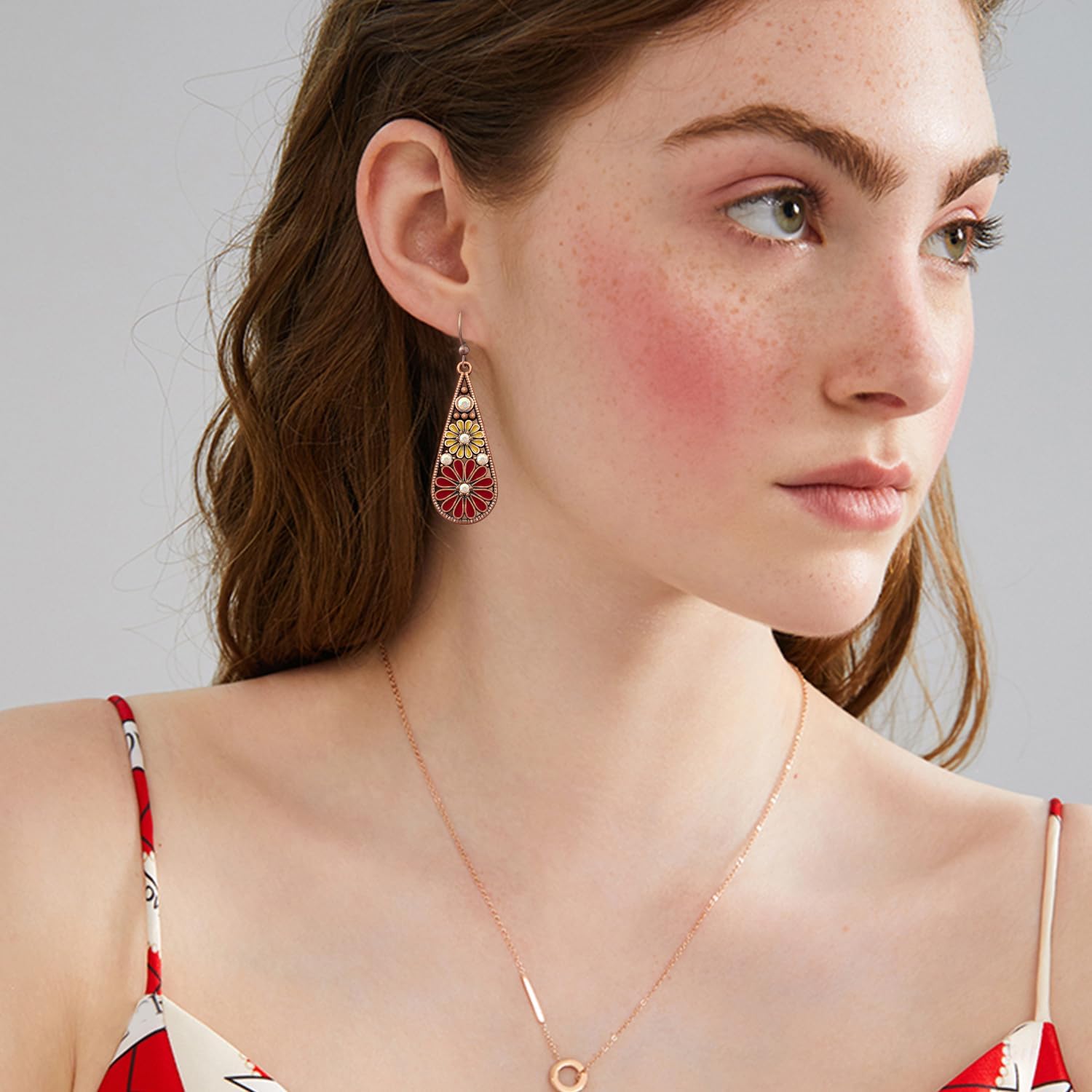 JIMARIN Handmade Bohemian Tribal Retro Copper Crystal Teardrop Dangle Drop Earrings Nationwide Type Geometry Colourful Enamel Flower Hook Earrings for Ladies