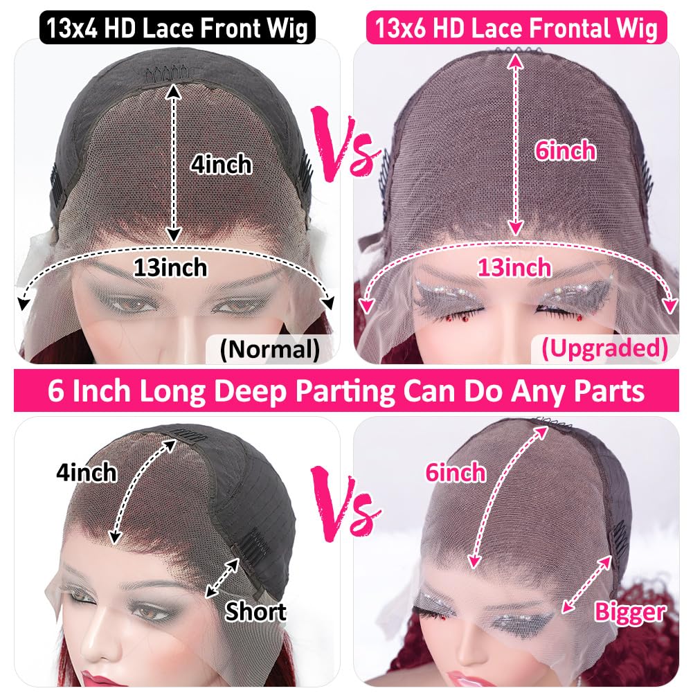Deep Wave Burgundy Wig Materials:100% Brazilian Human Hair Lace Frontal Wigs With Lengthy Pure Hairline,Pre Plucked with Child Hair,Lower From Younger Lady