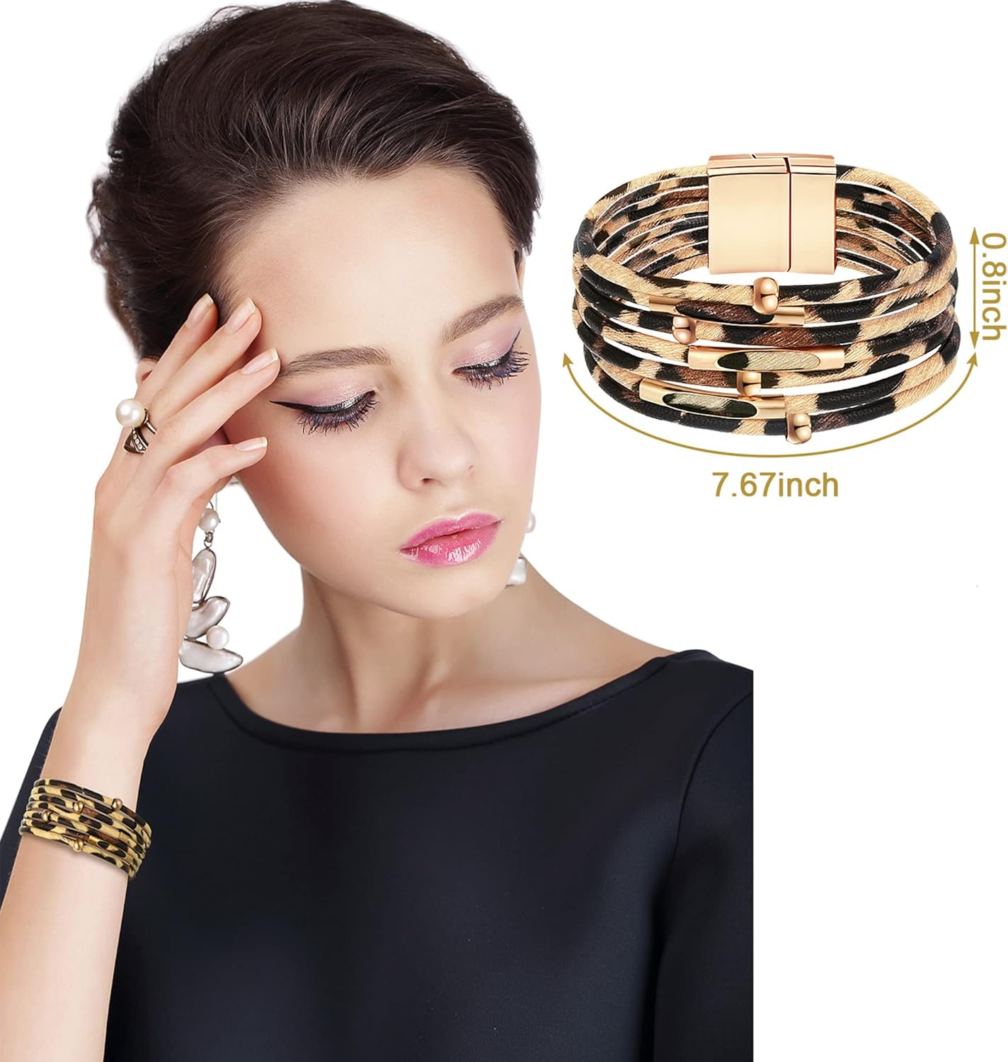 Made of synthetic leather-based with a magnetic clasp for simple put on.