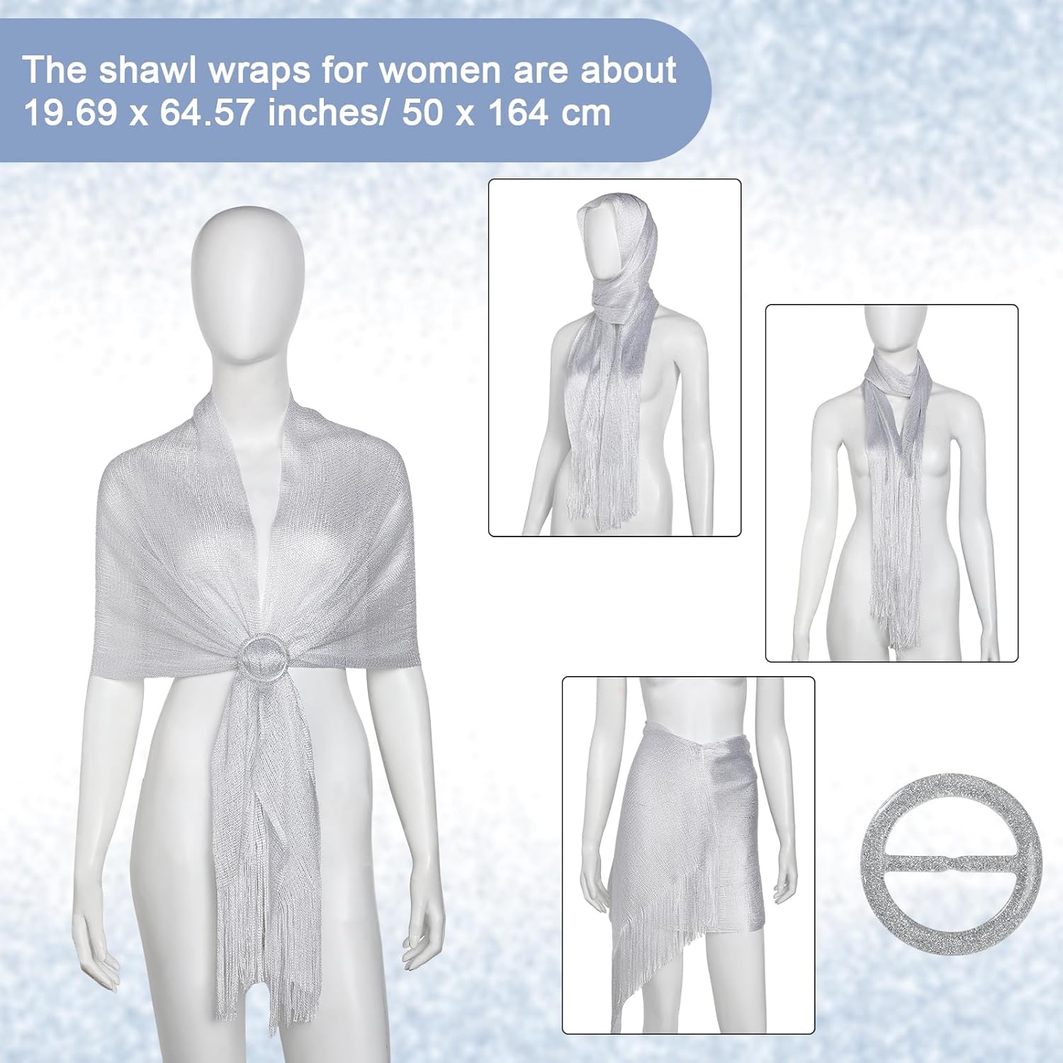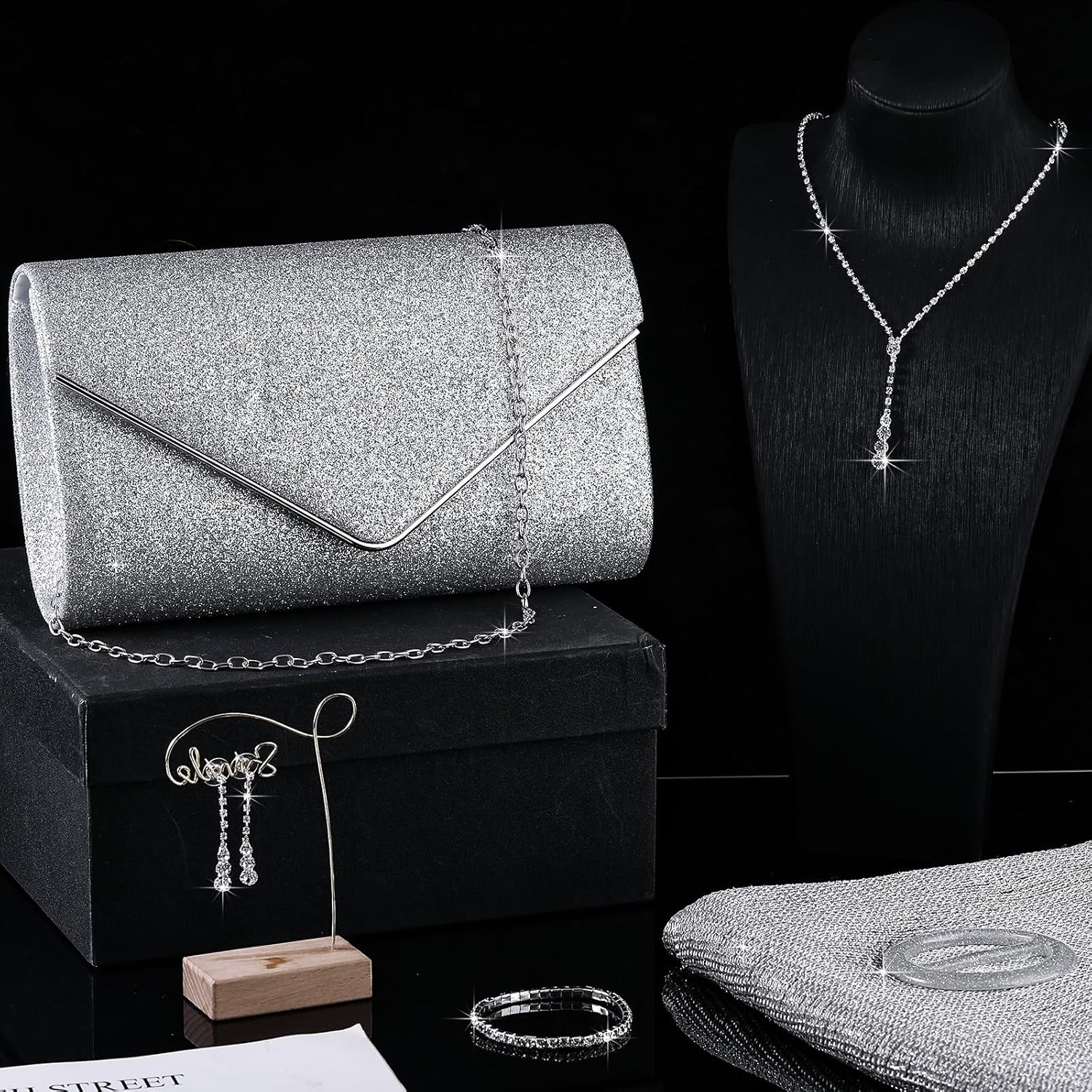 Hicarer 5 Pcs Silver Clutch Purse and Shawl Wraps Jewelry Set for Women Dressy Evening Accessories Formal Set