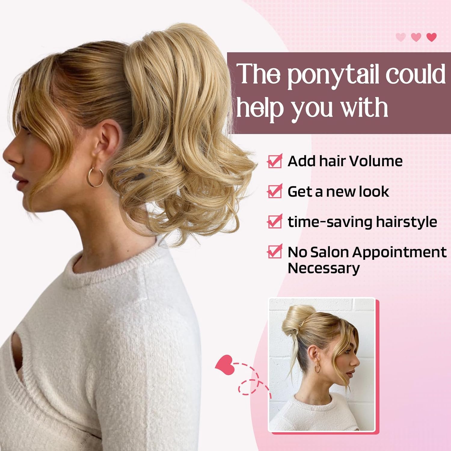[DIY Fun-Various Style] You may place the clip in ponytail wherever you want in your head, customizing it to your most popular model, whether or not it is a prime bun, a low aspect bun, a natural-looking brief ponytail, and it is appropriate for each informal and formal events