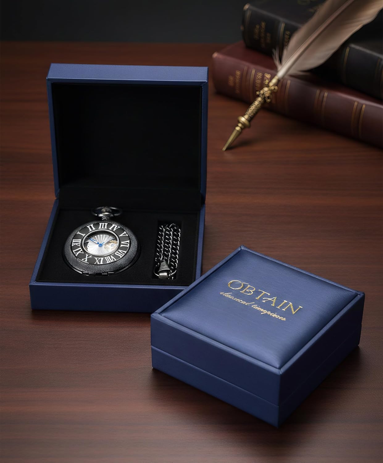 Classic Hand Wind Up Pocket Watches for Males, Mechanical Pocket Watch with Chain, Mens Skeleton Pocketwatch