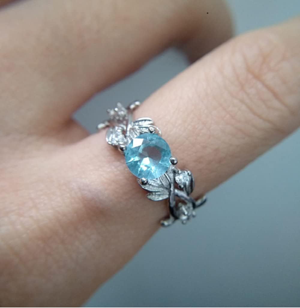 The elegant sterling silver ring, the aquamarine inlaid on the highest of the middle, with excessive definition and dazzling brilliance, and small crystals inlaid on either side, present the class and heat of the gem