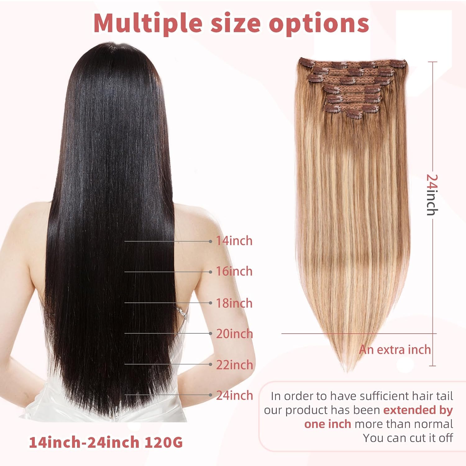 Customizable Size and Quantity: Every set consists of 7 items and weighs 120 grams. Select from 14, 16, 18, 20, 22, or 24-inch extensions so as to add quantity or size to your hair. For a voluminous impact, we advocate 1-2 packs, whereas 2-3 packs are perfect for extending your hair.Human Hair Clip In Extensions