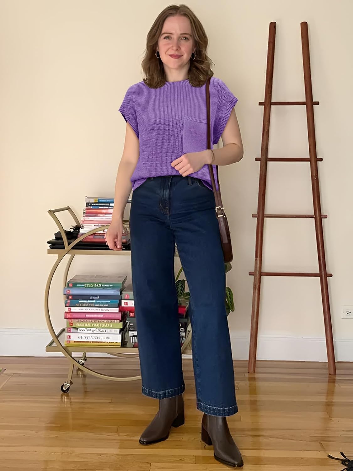 Womens Summer time Brief Sleeve Shirts Informal Crew Neck Unfastened Knit Sweater Vests